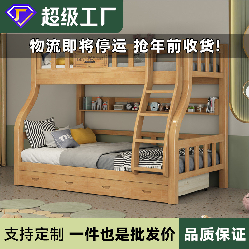 모든 단단한 나무 상하 침대 성인용 홈 높고 낮은 침대 어린이 더블 침대 어머니 침대 2 층 상하 침대