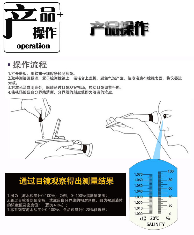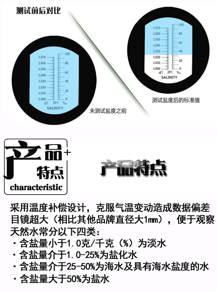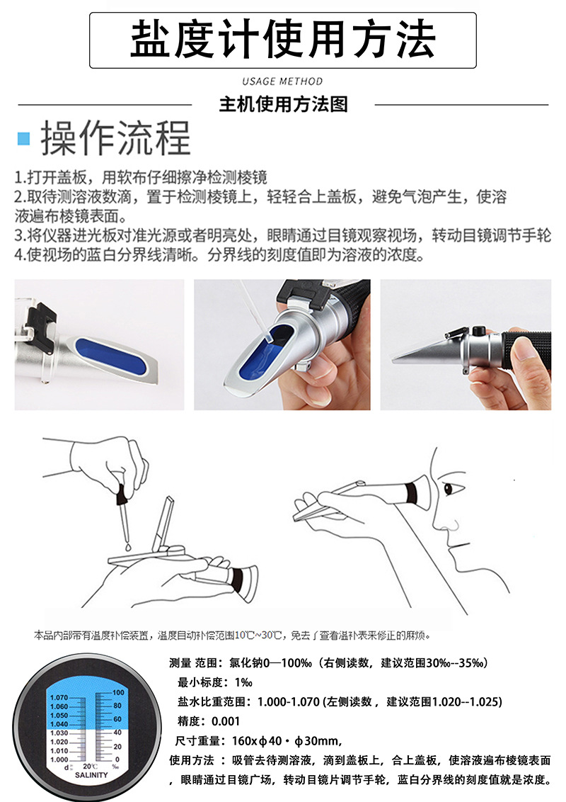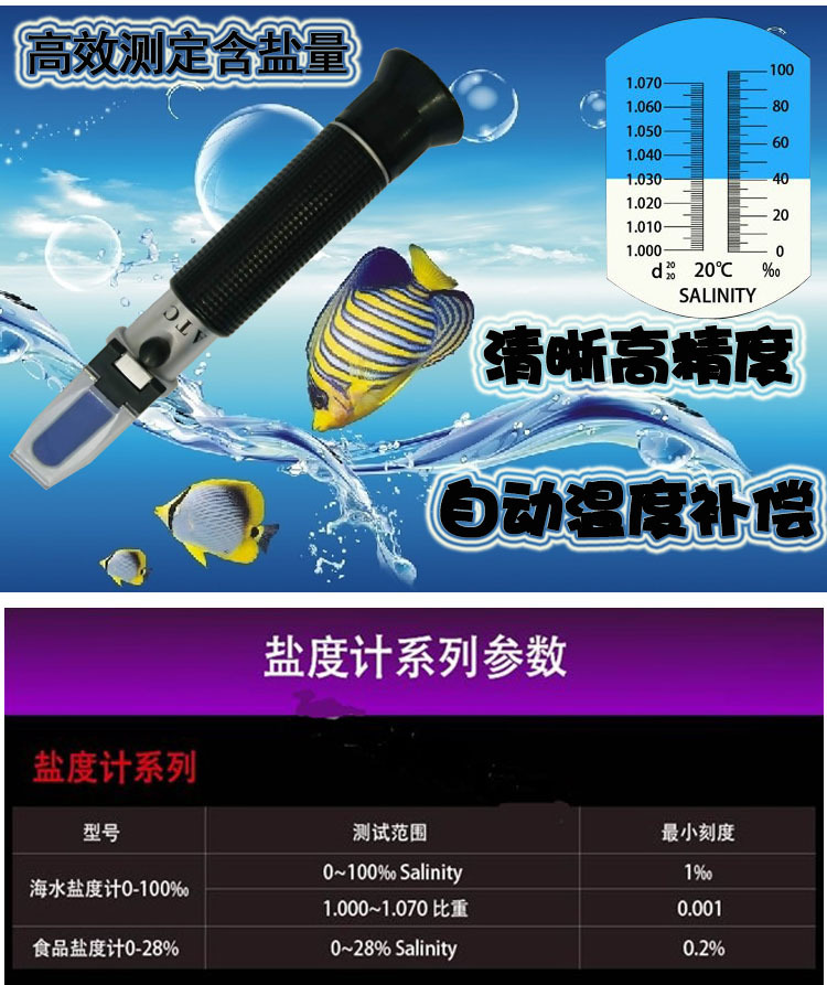 ATC 온도 보상과 광학 염분 측정기 비중계 바다 탱크 농사 염수 염분 측정기스토어 가기