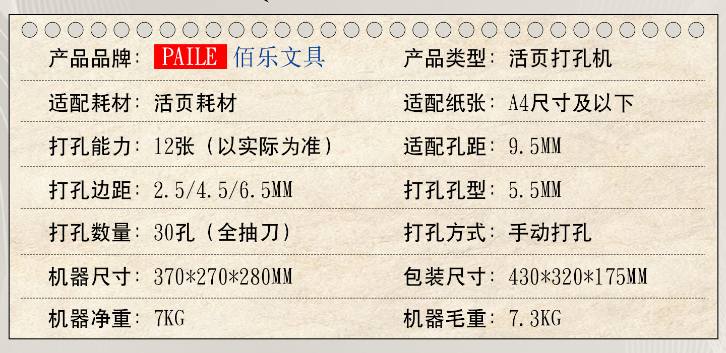 MP12 30 홀 펀처 펀처 원형 링 홀 5 루스 리프 북 펀처 다중 구멍 펀처 소형 6 홀