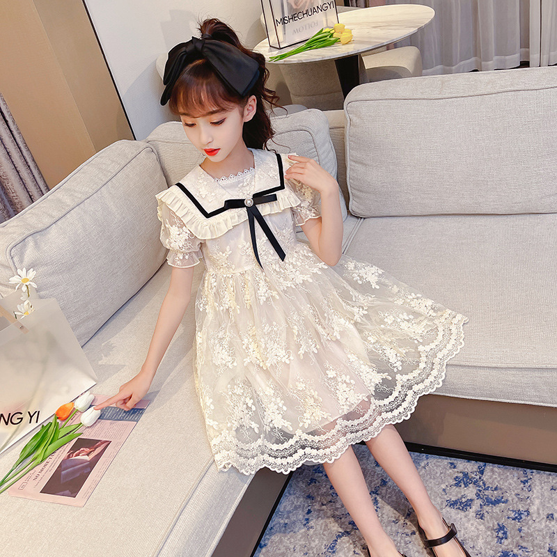 어린이 대학 스타일 원피스 새로운 어린이 여름 한국 스타일 원피스 여자 서양 스타일 레이스 판초 공주 원피스스토어 가기