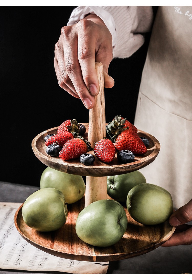나무 과일 접시 거실 홈 커피 테이블 다층 애프터눈 티 스낵 케이크 접시 디저트 프론트 데스크 디스플레이 선반
