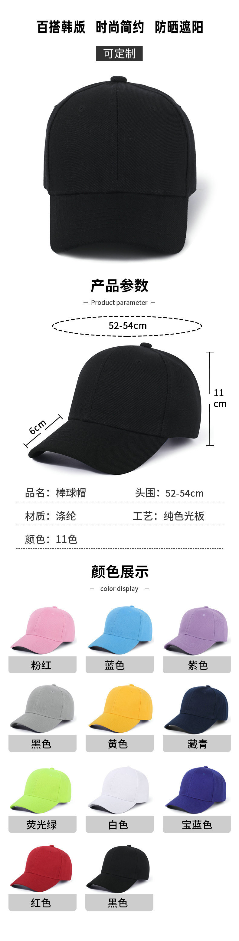 아동 모자 도매 한국 아동 야구 모자 학교 수업 활동 모자 선 스크린 단색 라이트 플레이트 캡