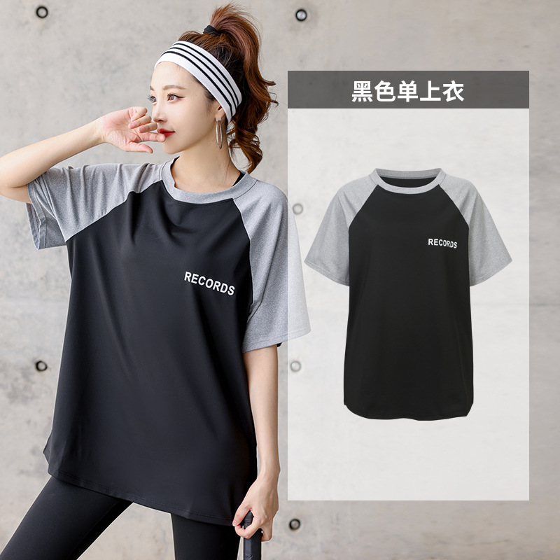 새로운 스타일의 여성용 요가복, 큰 사이즈 루즈핏 상의, 피트니스 반팔 운동복, 아웃도어 패션 캐주얼 기성복 세트