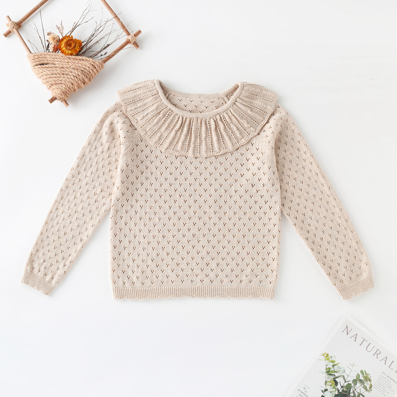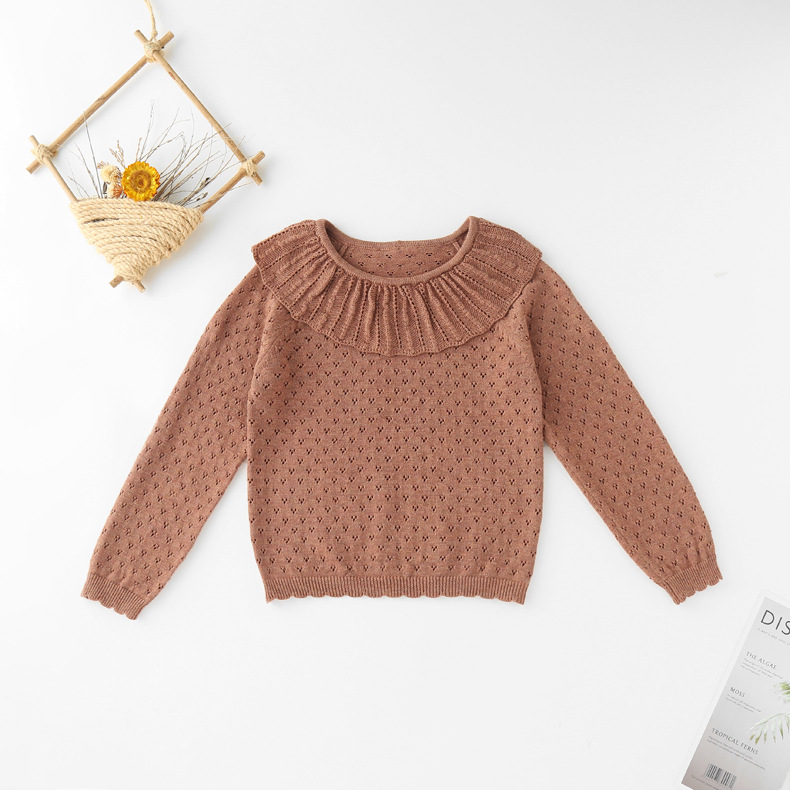 여아 가을 의류 한국 버전의 여아 아동복 아기 소녀 스웨터 연꽃 잎 칼라 얇은면 풀오버 스웨터 머리카락의 세대