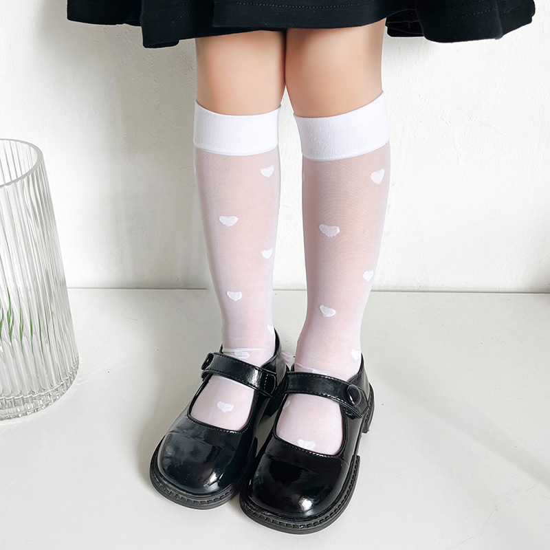 여아용 스타킹 중간 길이 양말 흰색 JK 로리타 양말 긴 양말 어린이용 하트 자수 공주 양말