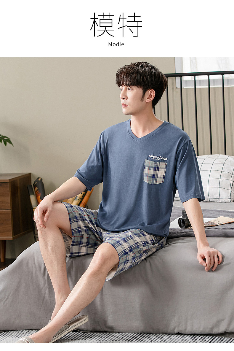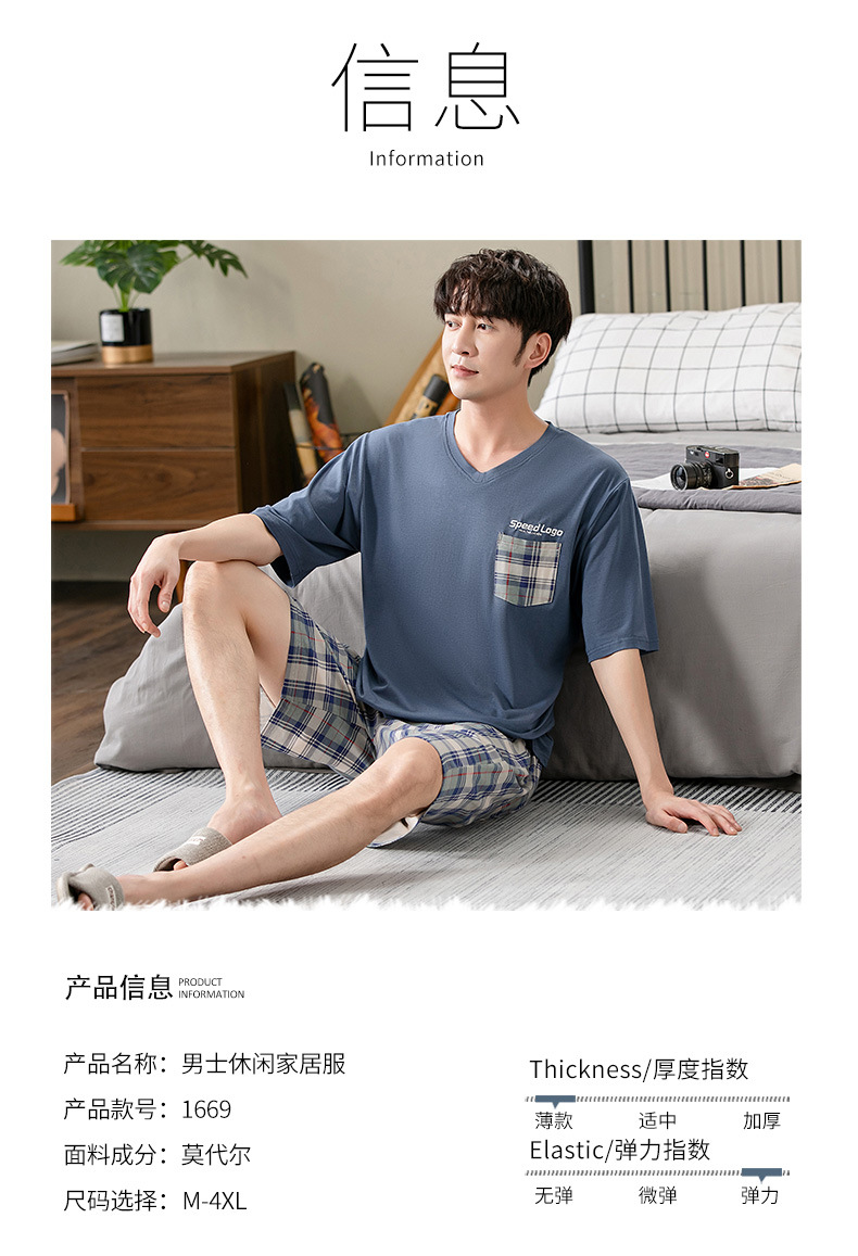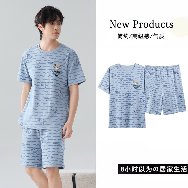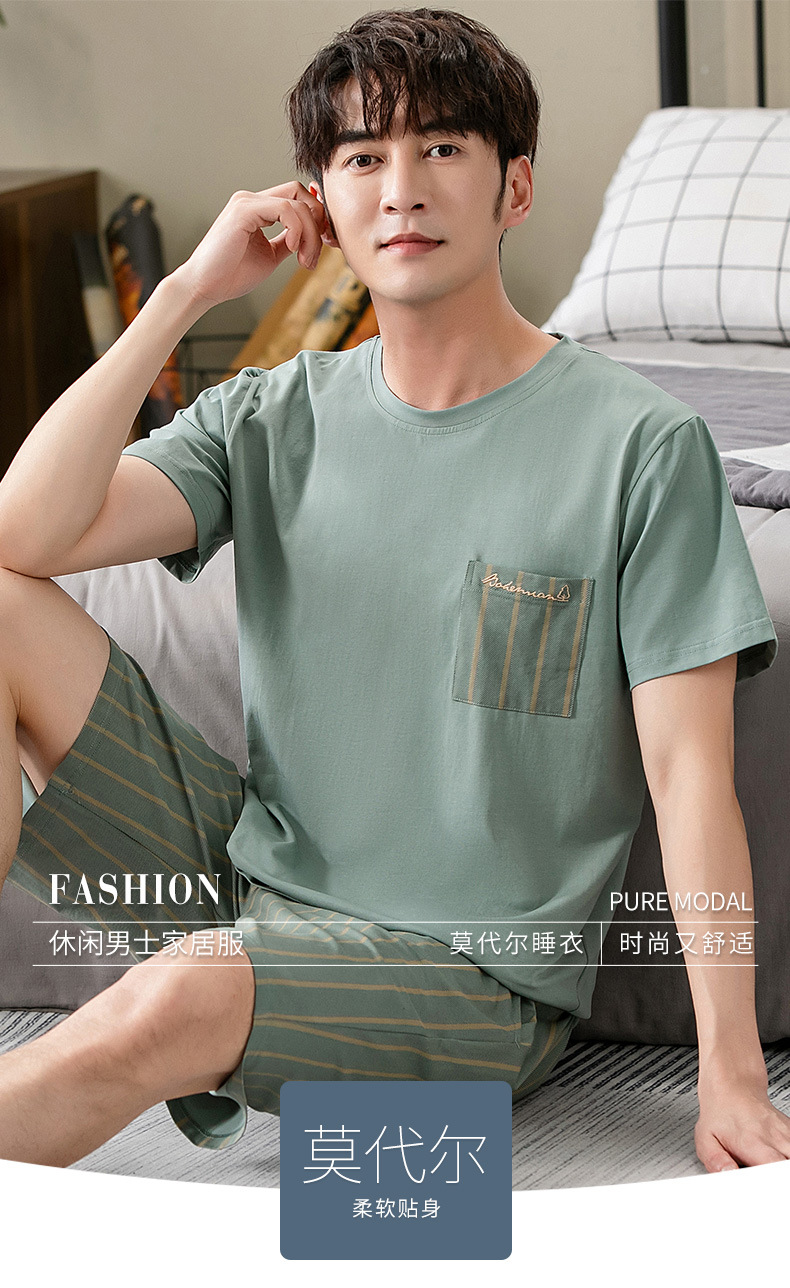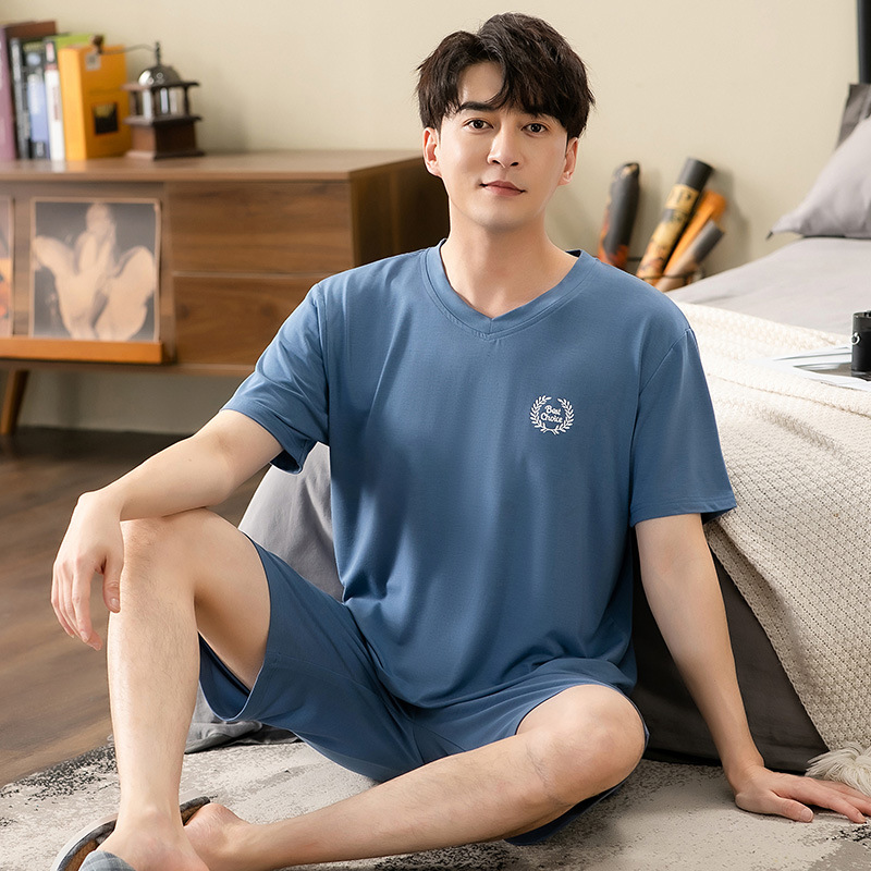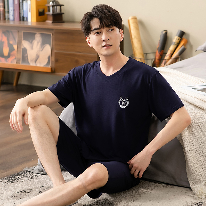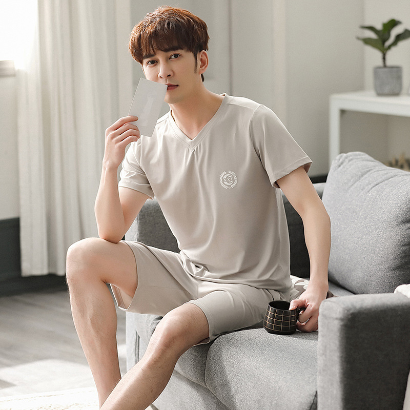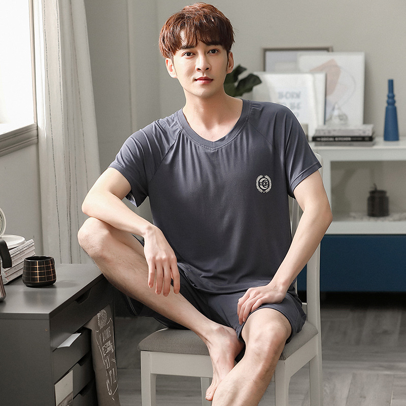 잠옷 남자의 여름 모달 면 실크 시원한 반팔 반바지 남자의 아이스 실크 여름 가정 세트 옷스토어 가기