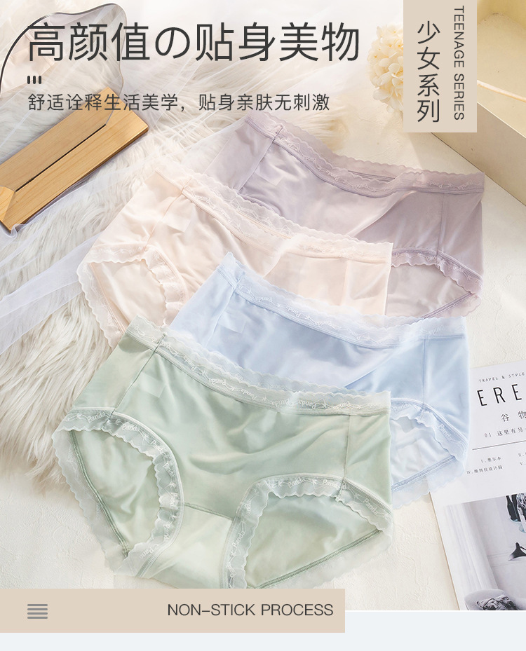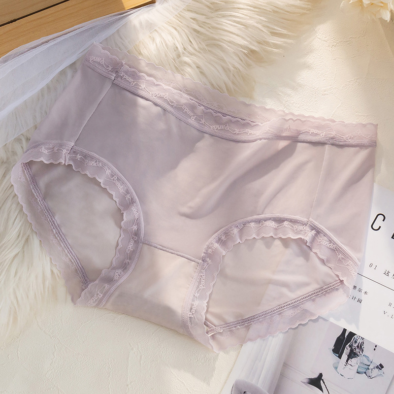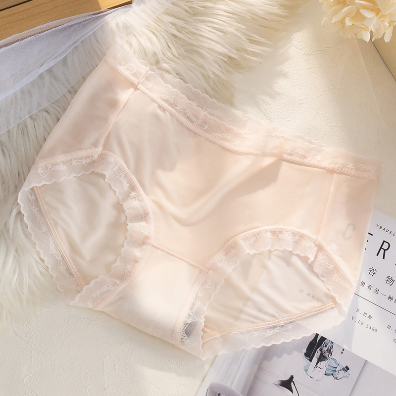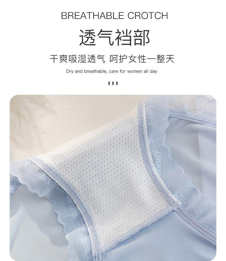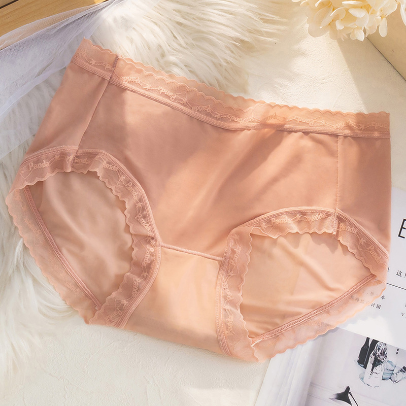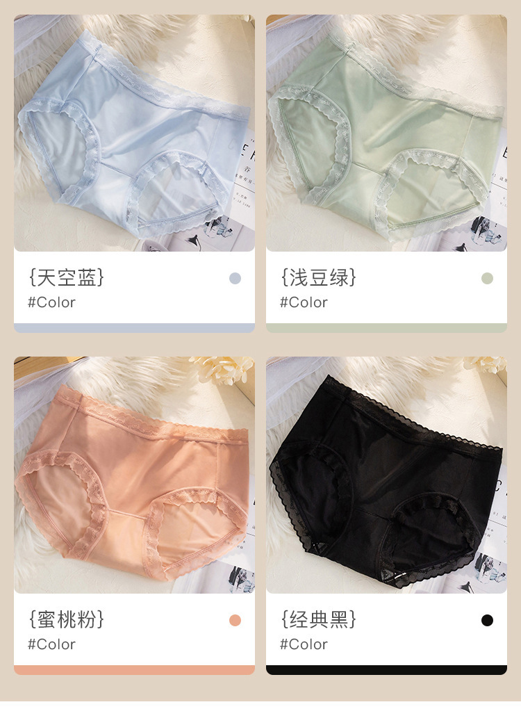 여름 아이스 실크 속옷 여성용 섹시한 초박형 미드 웨이스트 알몸 느낌 바지 헤드 랩 엉덩이 레이스 소녀를위한 원활한 팬티