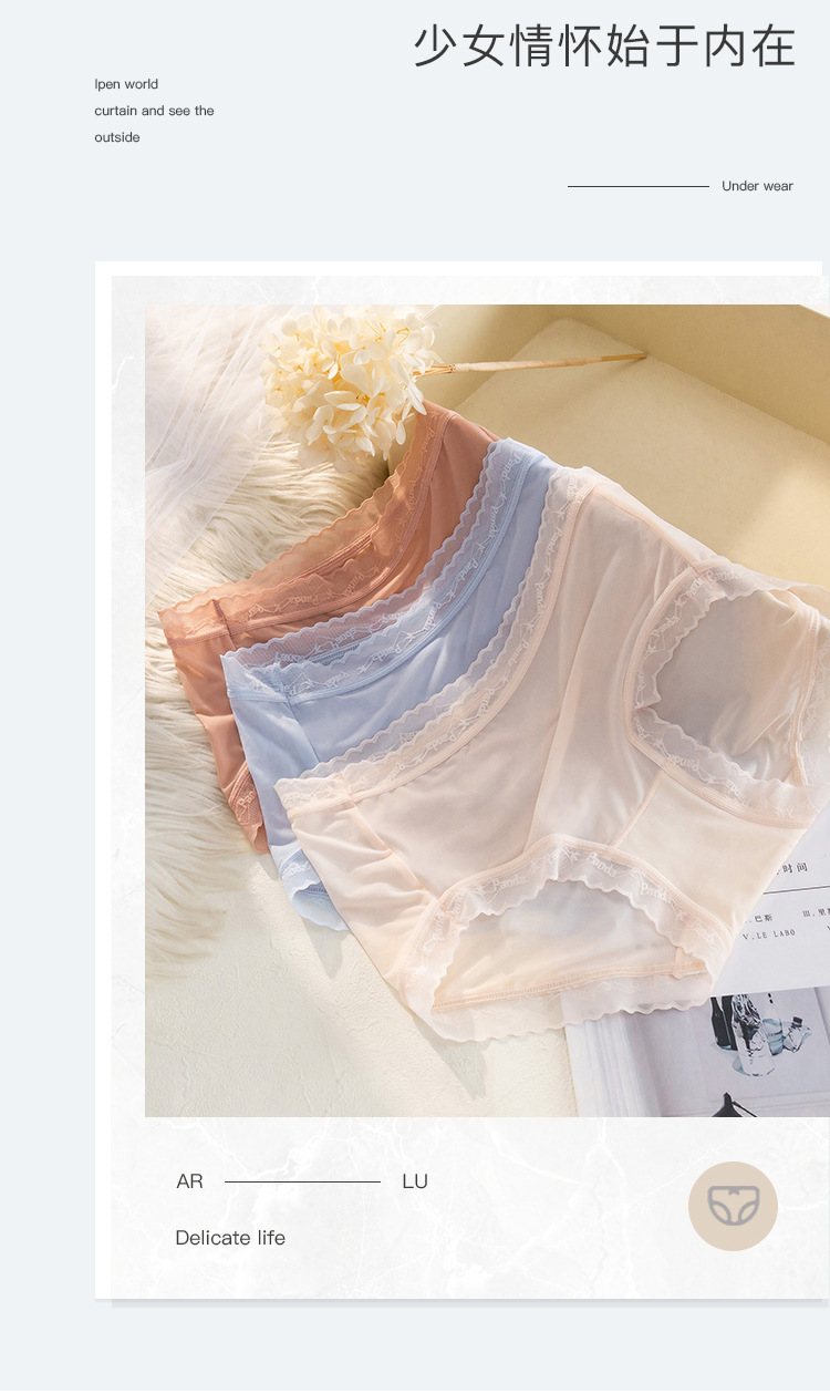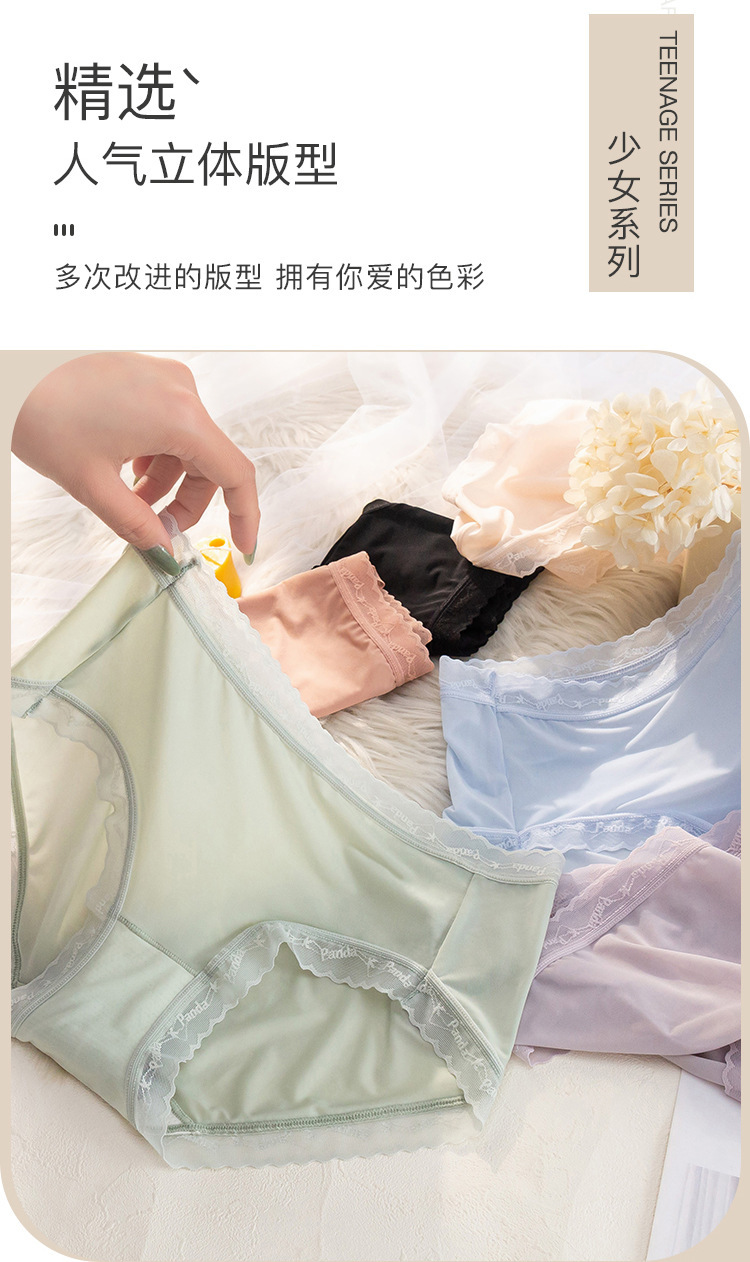 여름 아이스 실크 속옷 여성용 섹시한 초박형 미드 웨이스트 알몸 느낌 바지 헤드 랩 엉덩이 레이스 소녀를위한 원활한 팬티스토어 가기