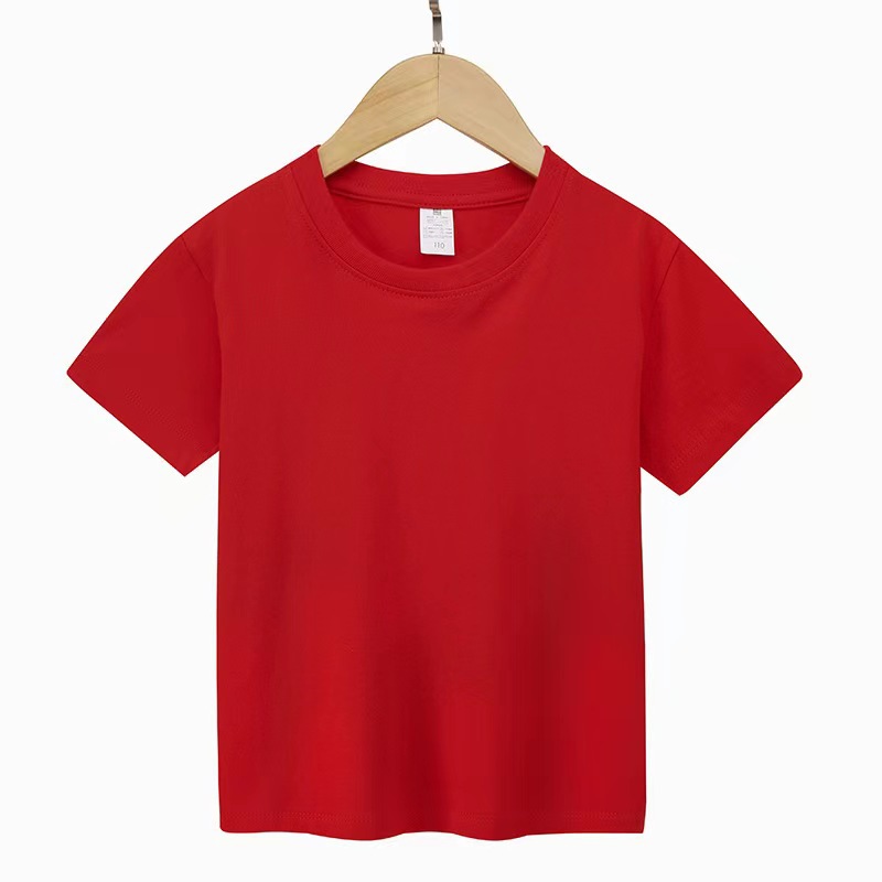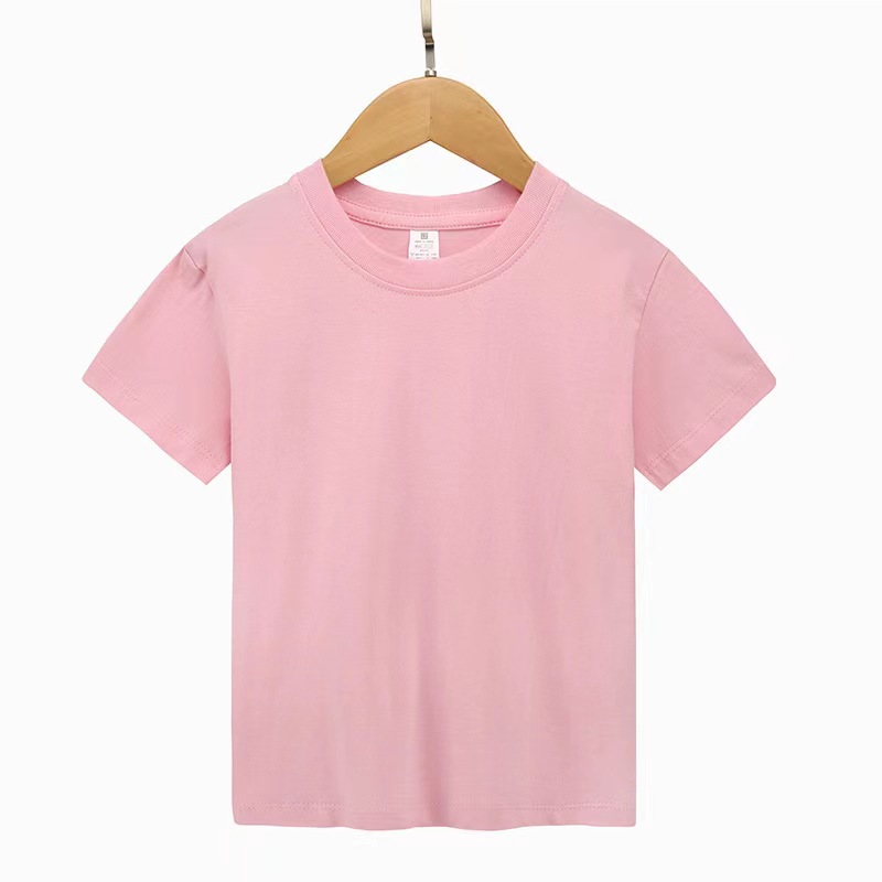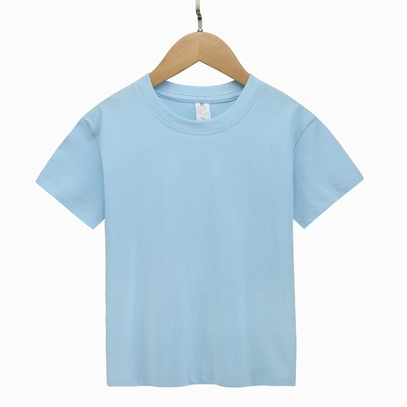 여름 퓨어 코튼 부모 반소매 남녀 커플 반소매 어린이 티셔츠 느슨한 올매치 솔리드 컬러베이스 셔츠 탑