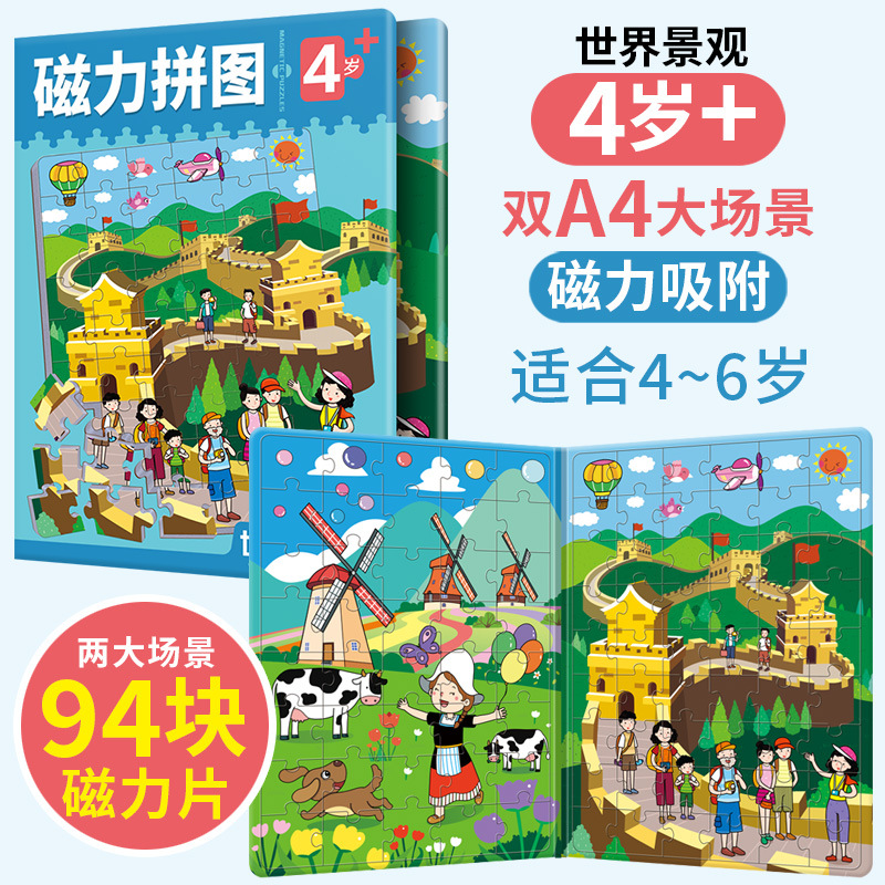 升级版磁力拼图,折叠书夹,收纳方便,磁力吸附不易散落,提高儿童手眼协调、逻辑思维、专注力、学习力和意志力,玩中学知识,让宝宝健康成长。