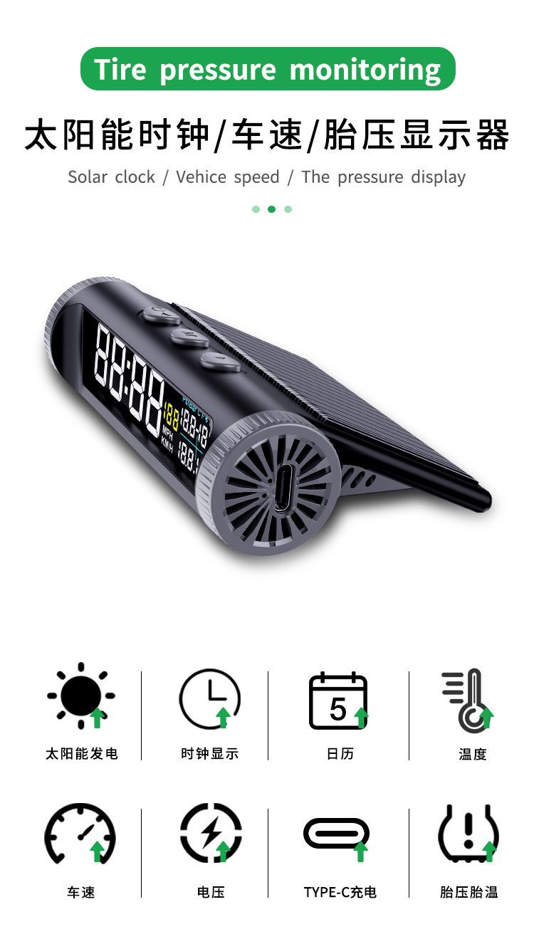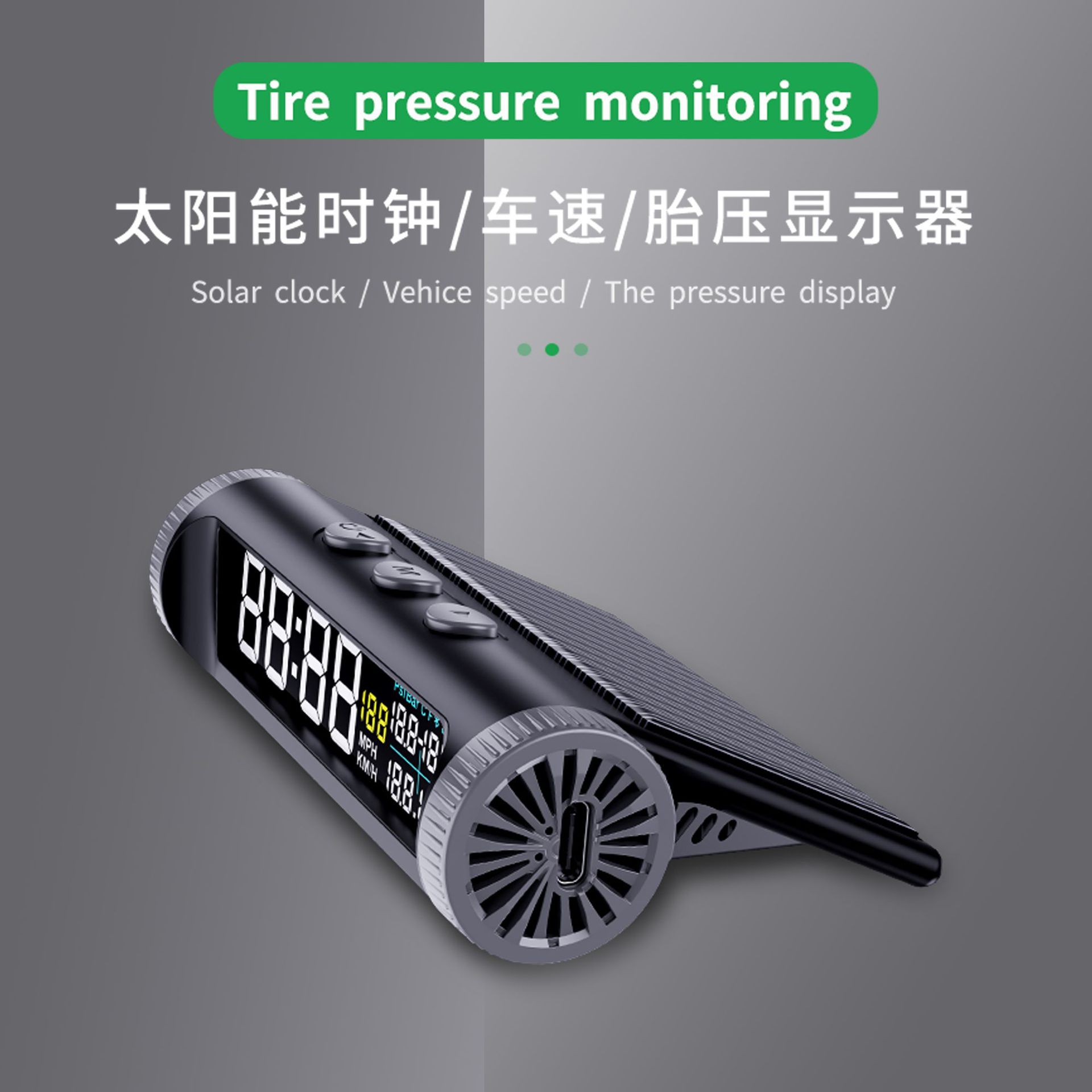 2025 태양열 자동차 시계 HUD 헤드 업 디스플레이 자동차 속도 전압 수온 타이어 압력 디스플레이