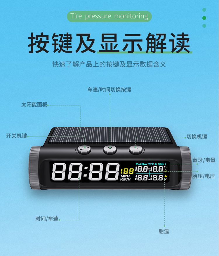 2025 태양열 자동차 시계 HUD 헤드 업 디스플레이 자동차 속도 전압 수온 타이어 압력 디스플레이스토어 가기