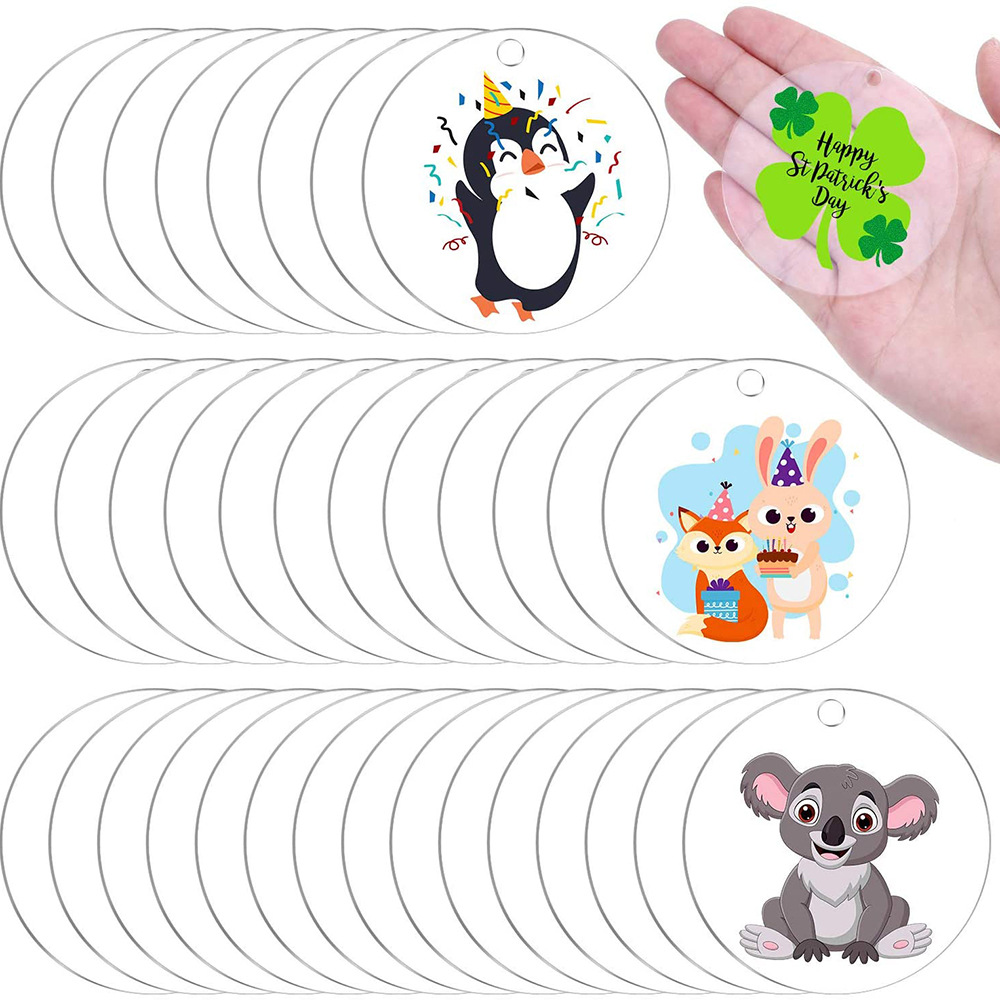 아크릴 열쇠 고리 배아 장식 투명 아크릴 라운드 DIY 수제 펜던트 공예 30 개 세트