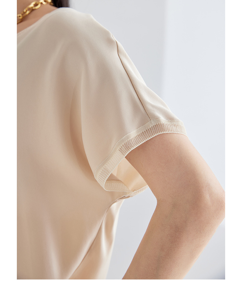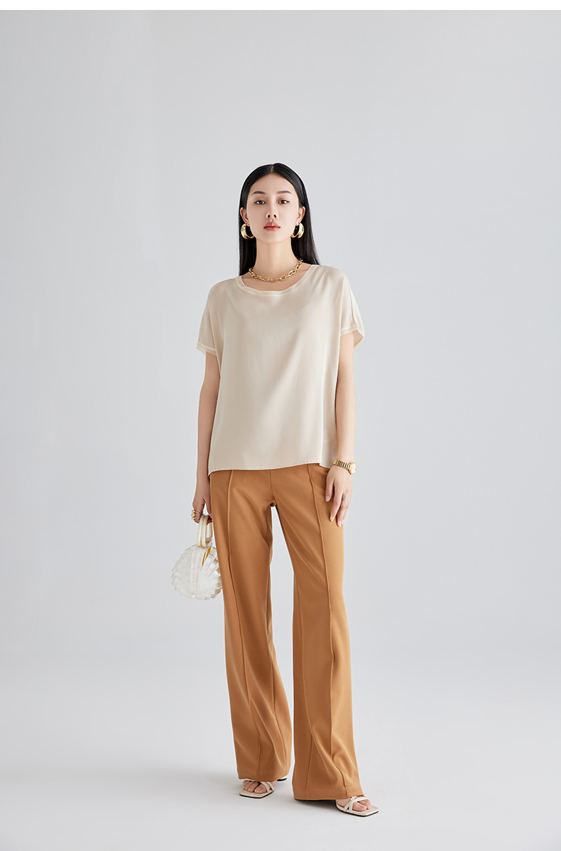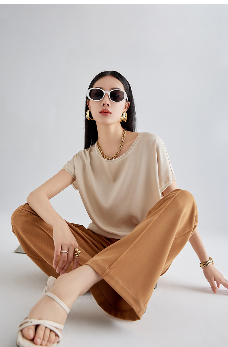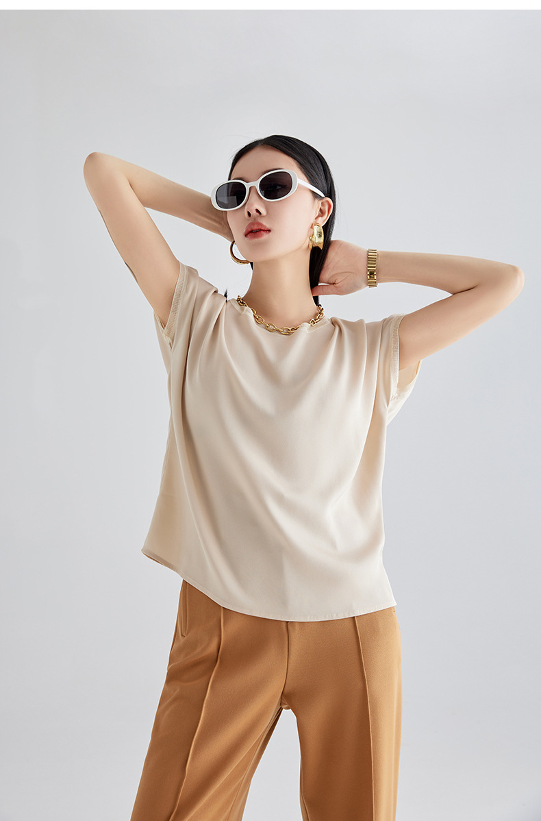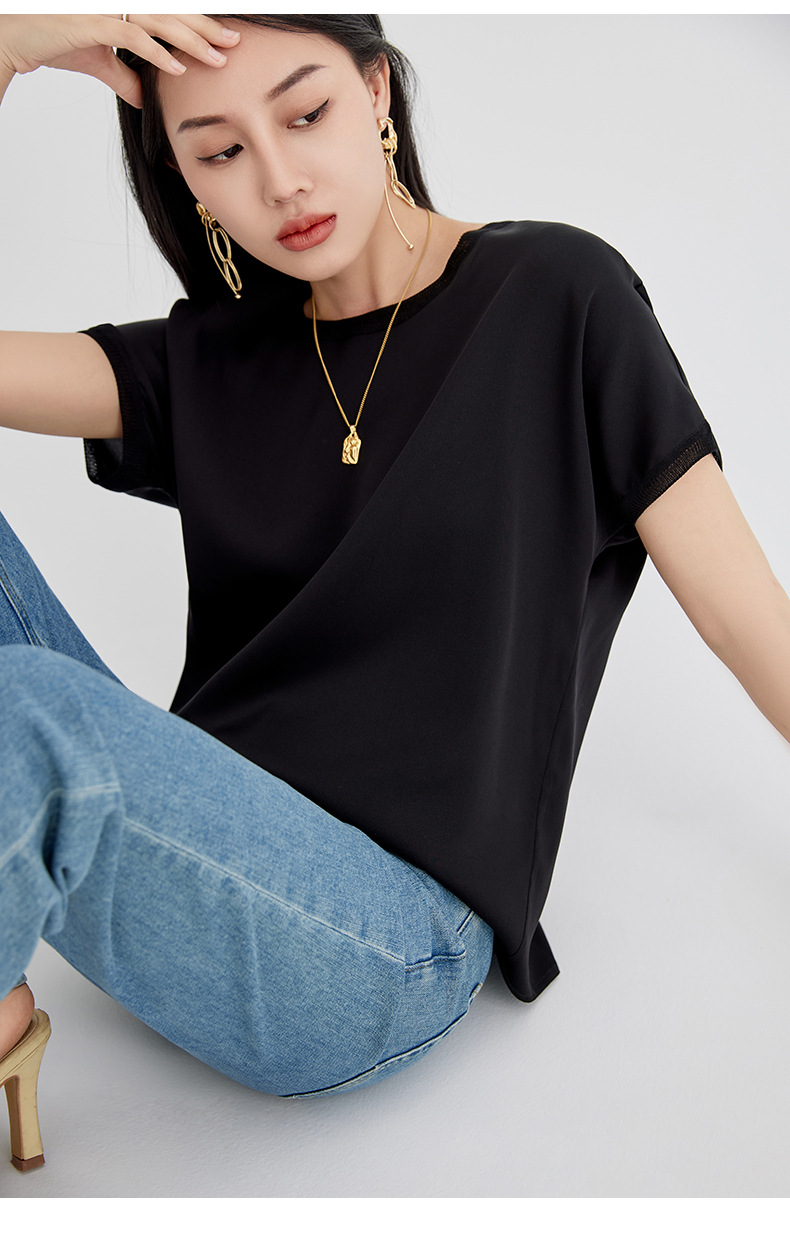여성용 실크 반팔 티셔츠, 멀버리 실크 새틴 라운드넥 탑, 2025 루즈핏 캐주얼 실크 베이스 레이어, 캐주얼하고 다용도로 활용 가능스토어 가기