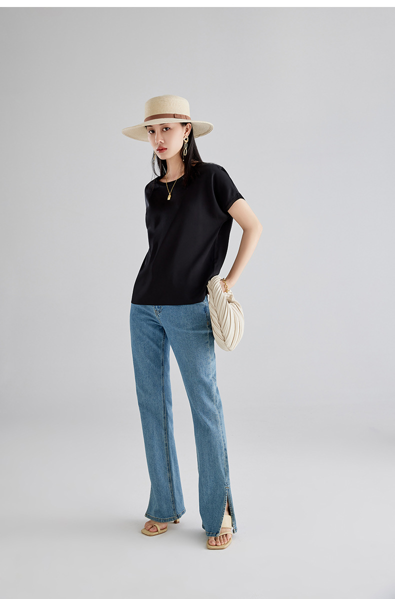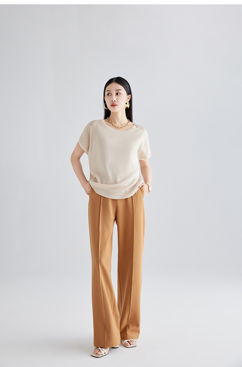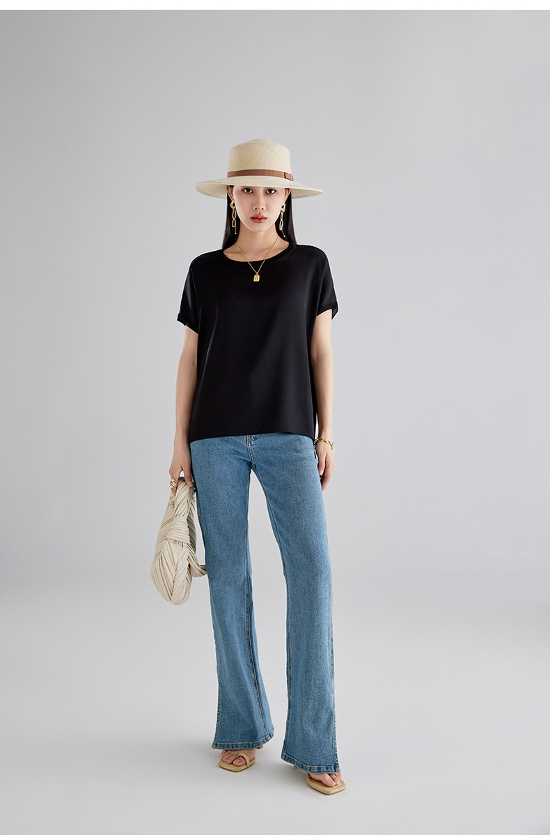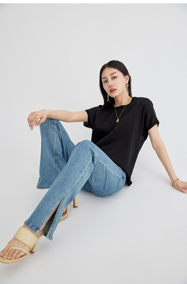 여성용 실크 반팔 티셔츠, 멀버리 실크 새틴 라운드넥 탑, 2025 루즈핏 캐주얼 실크 베이스 레이어, 캐주얼하고 다용도로 활용 가능