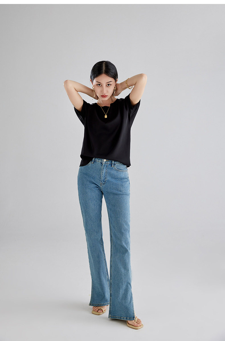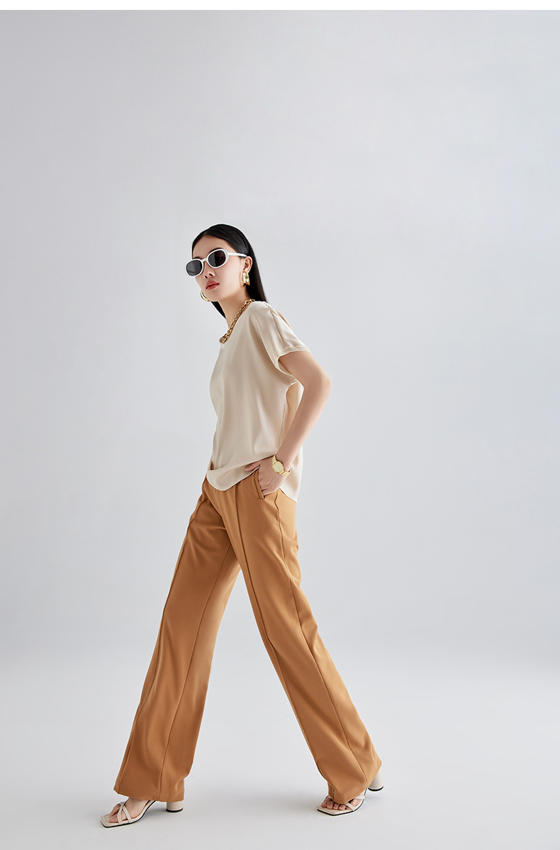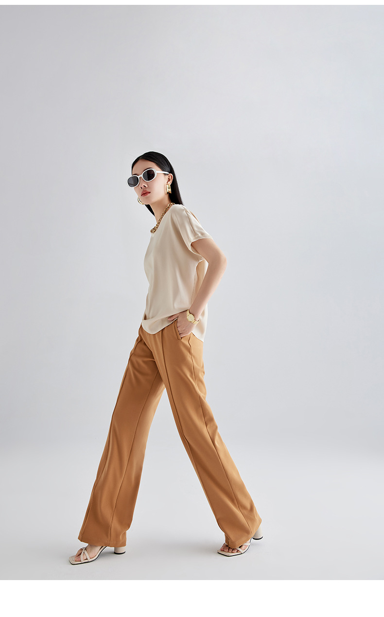 여성용 실크 반팔 티셔츠, 멀버리 실크 새틴 라운드넥 탑, 2025 루즈핏 캐주얼 실크 베이스 레이어, 캐주얼하고 다용도로 활용 가능
