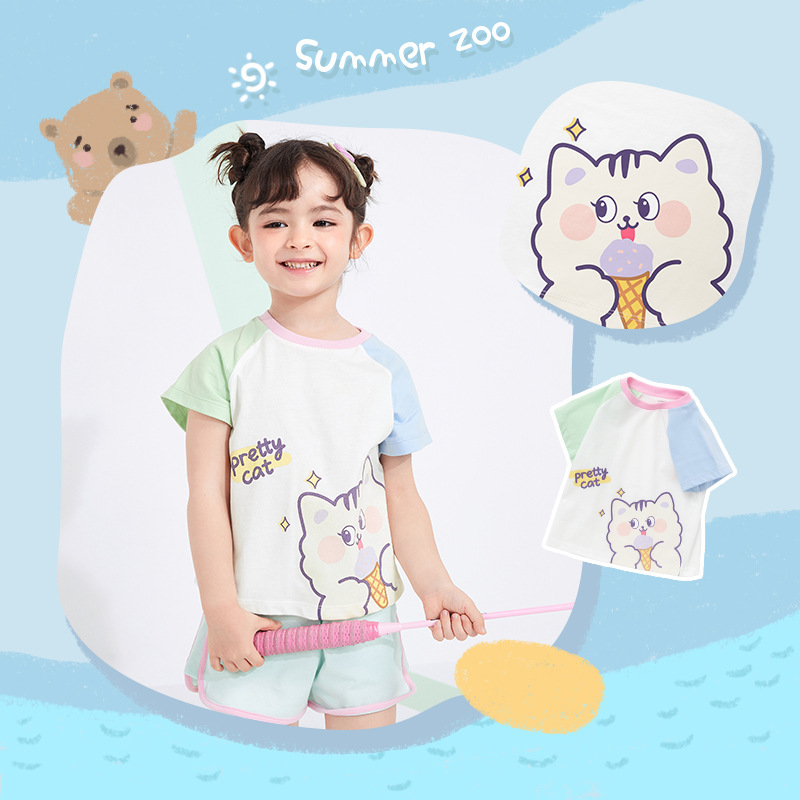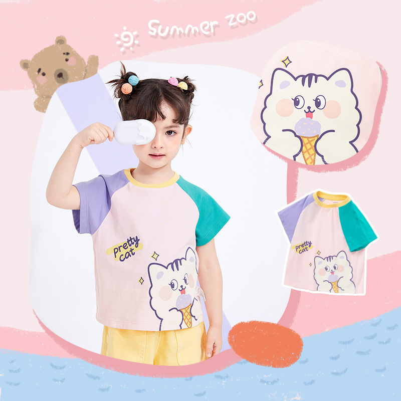 2022 새 소녀 티셔츠 어린이 반팔 여름 옷 어린이 달콤한 시원한 대비 컬러 탑스토어 가기