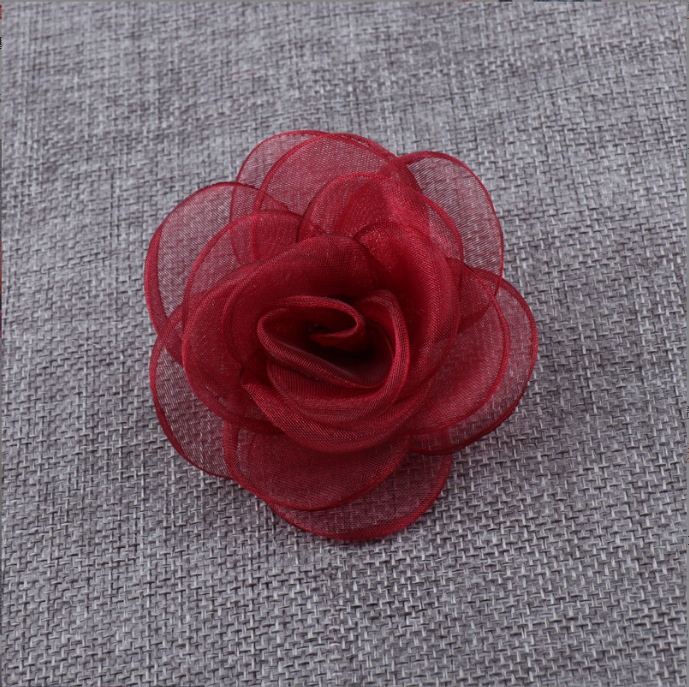 도매 한국어 버전 7cm 수제 직물 탄 가장자리 장미 꽃 DIY 헤어 액세서리 신발 및 모자 의류 액세서리 재고