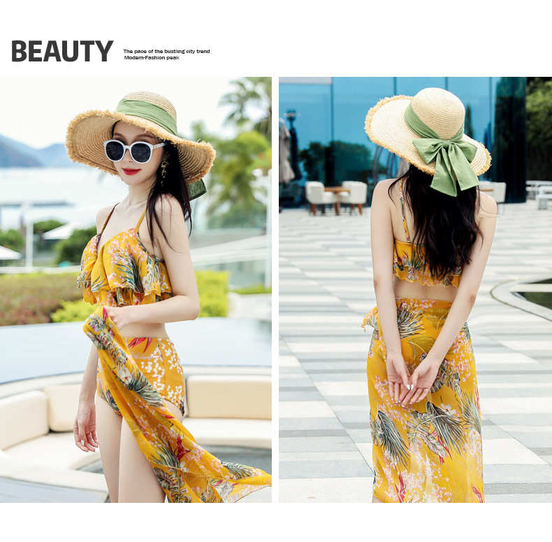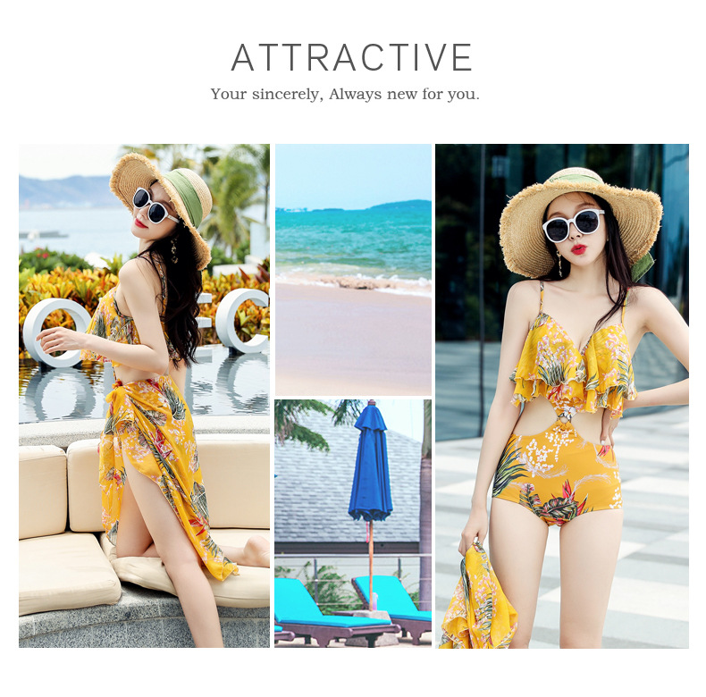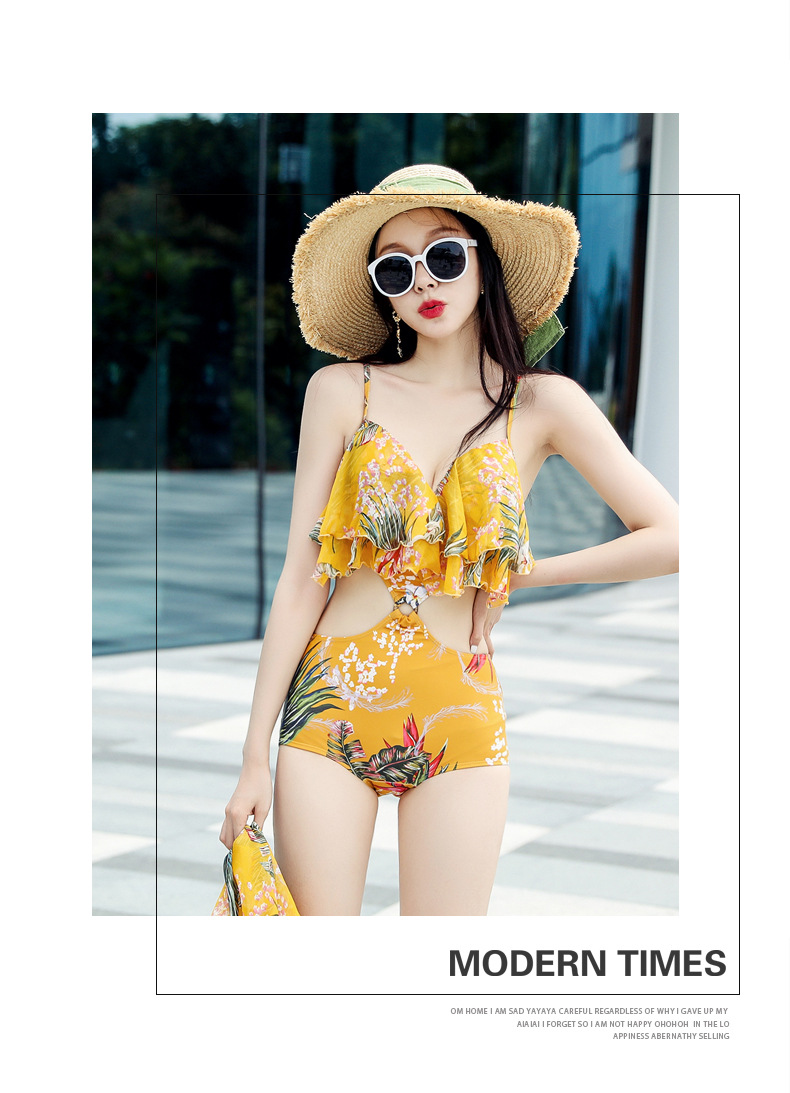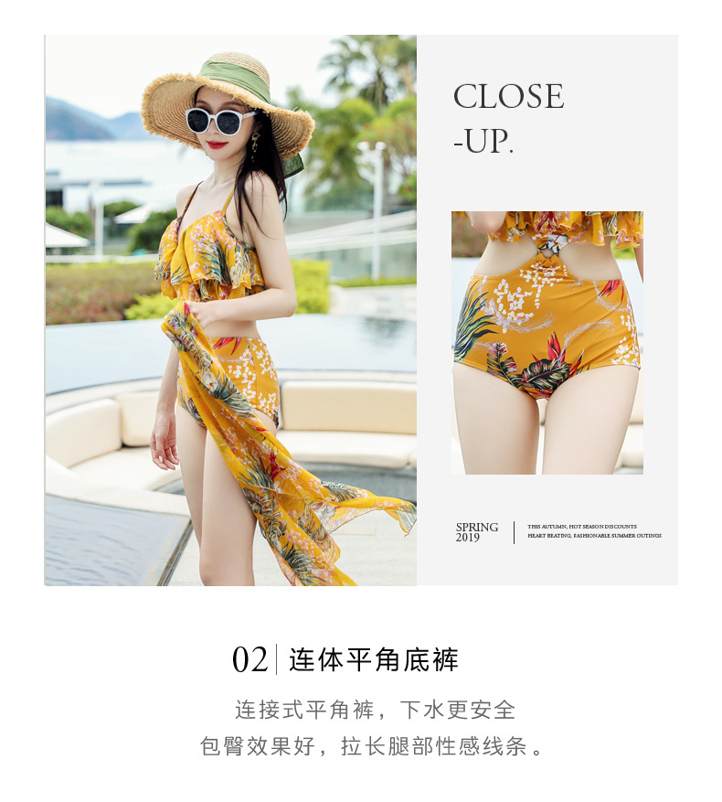 수영복 여성용 2022 새로운 스타일 배꼽 덮음 비키니 섹시한 크기 가슴 개더링 온천 커플 수영복