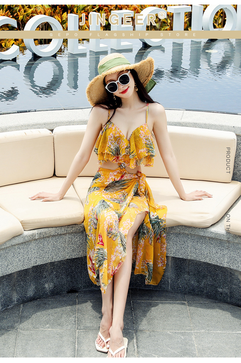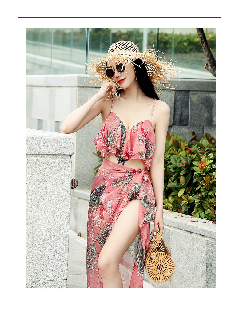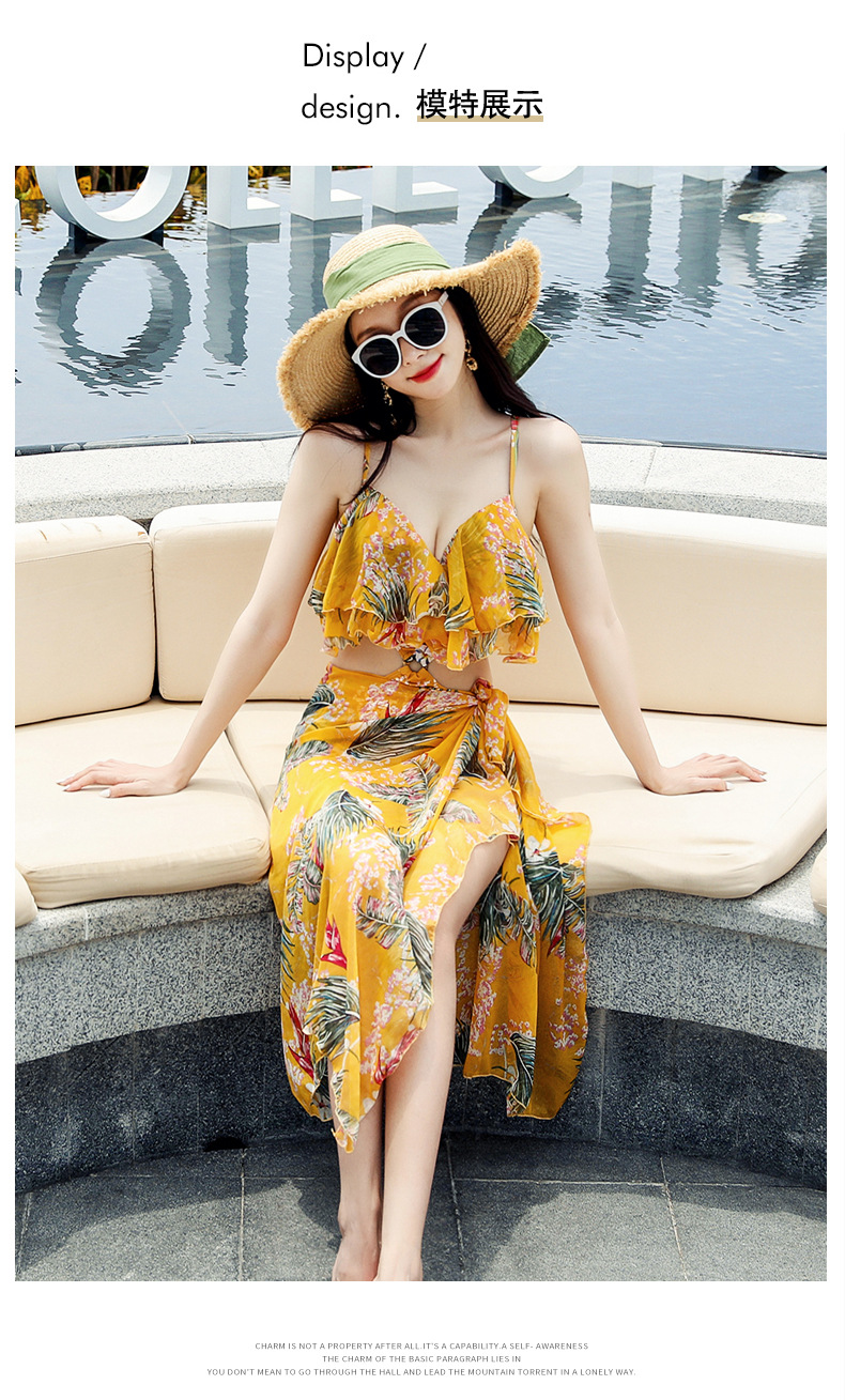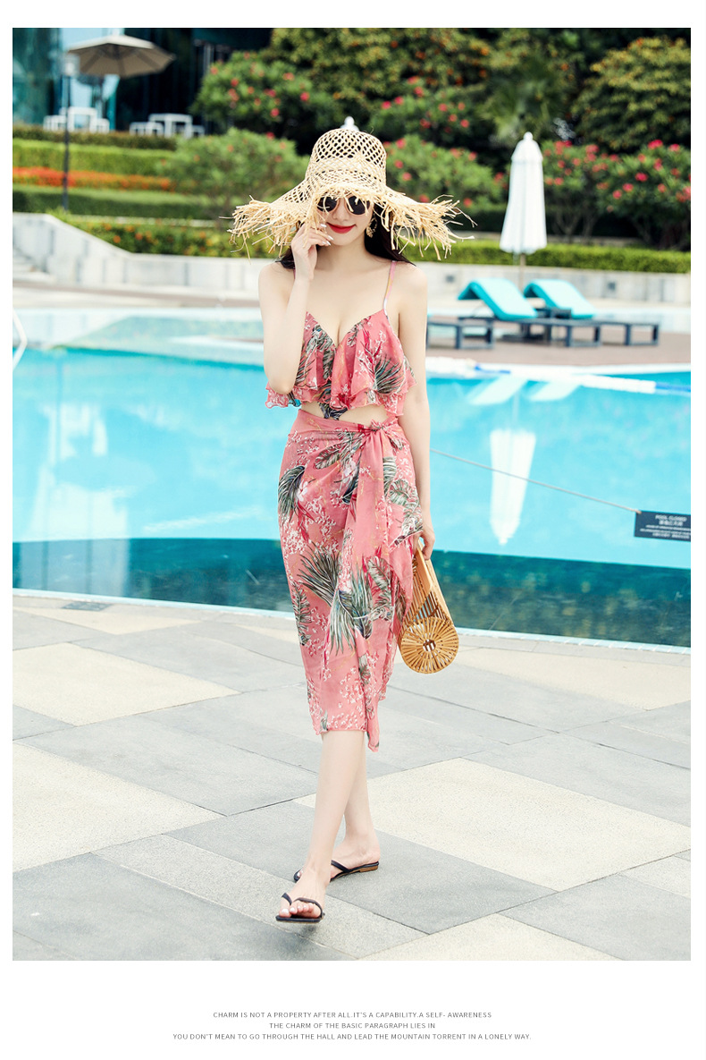 수영복 여성용 2022 새로운 스타일 배꼽 덮음 비키니 섹시한 크기 가슴 개더링 온천 커플 수영복