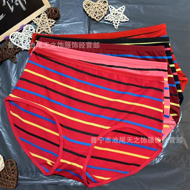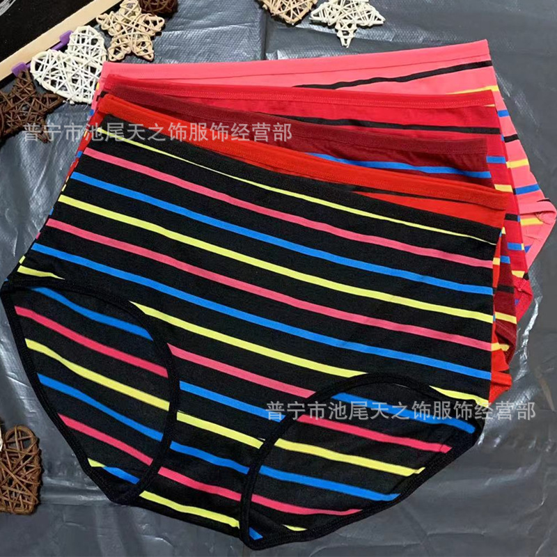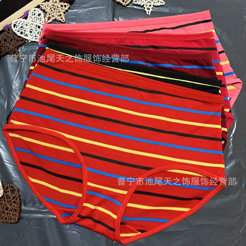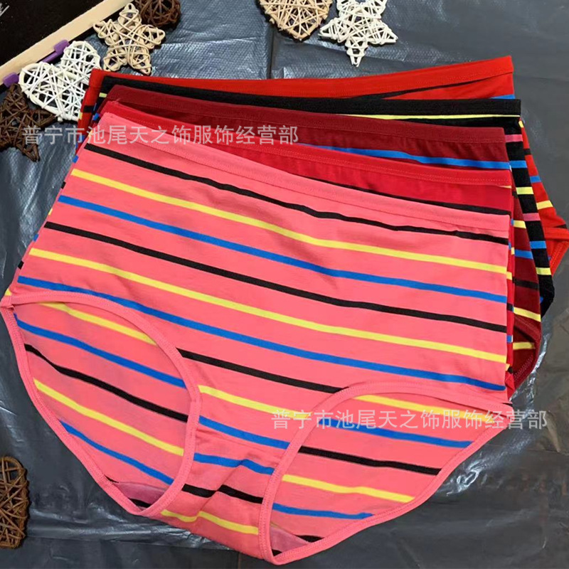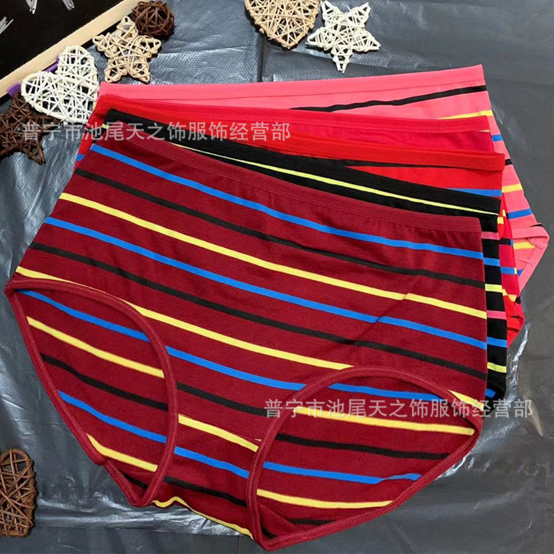 여성용 속옷 줄무늬 중년 및 노년 여성용 면 삼각팬티 도매 넓은 허리밴드