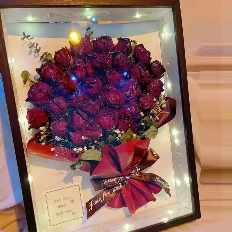 중공 입체 말린 꽃 사진 프레임 영원한 꽃 장식 그림 프레임 수제 DIY 조명 그림 테이블 교수형 벽 공예 프레임