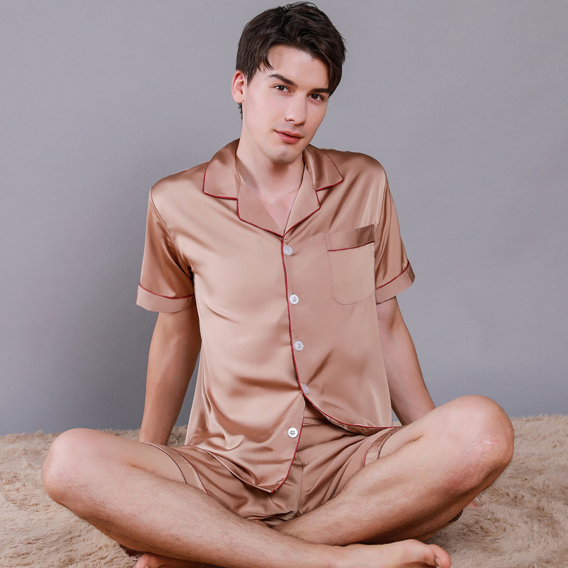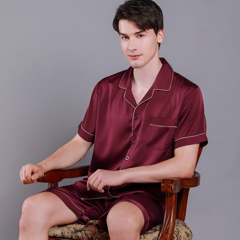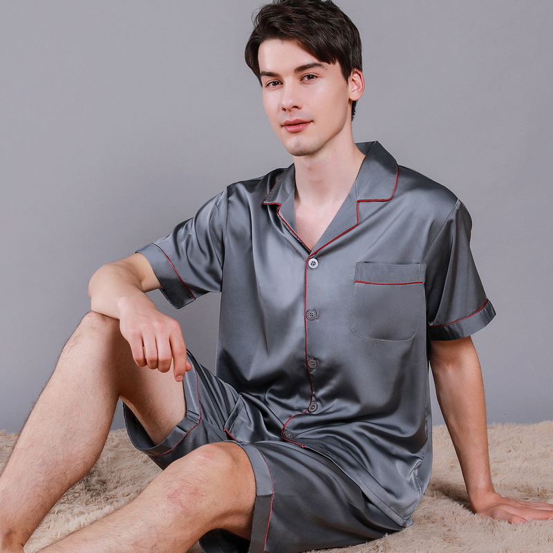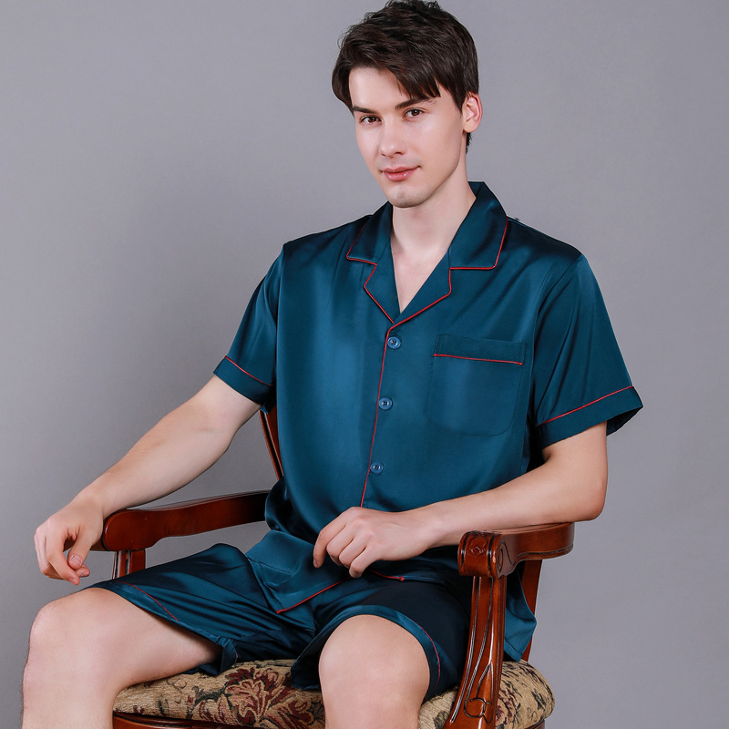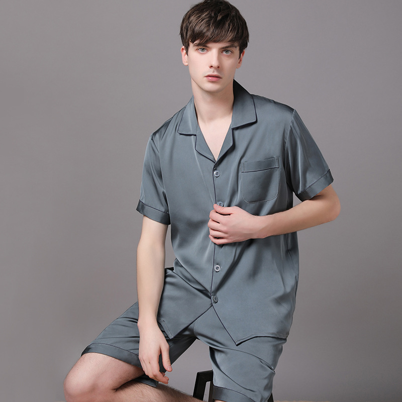 2022 새로운 반소매 반바지 봄과 여름 남자 잠옷 아이스 실크 홈 의류 반소매 단색