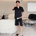 2023 새로운 커플 잠옷 여자의 여름 반팔 반바지 카디건 심플 세트 남자의 플러스 사이즈 느슨한 홈웨어 얇은스토어 가기