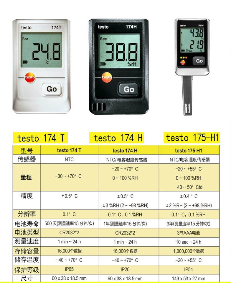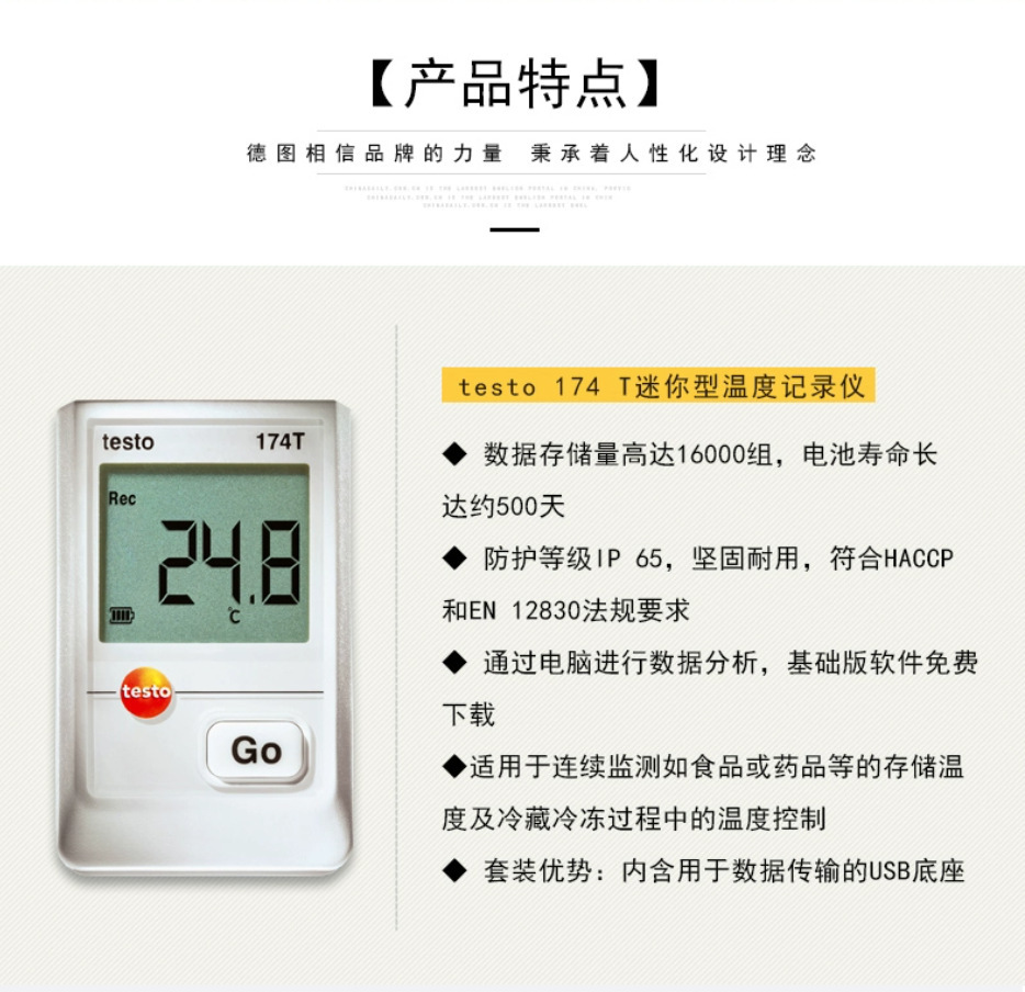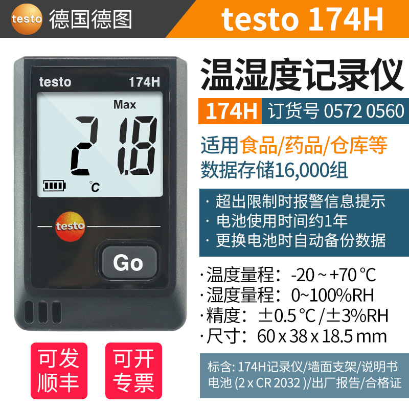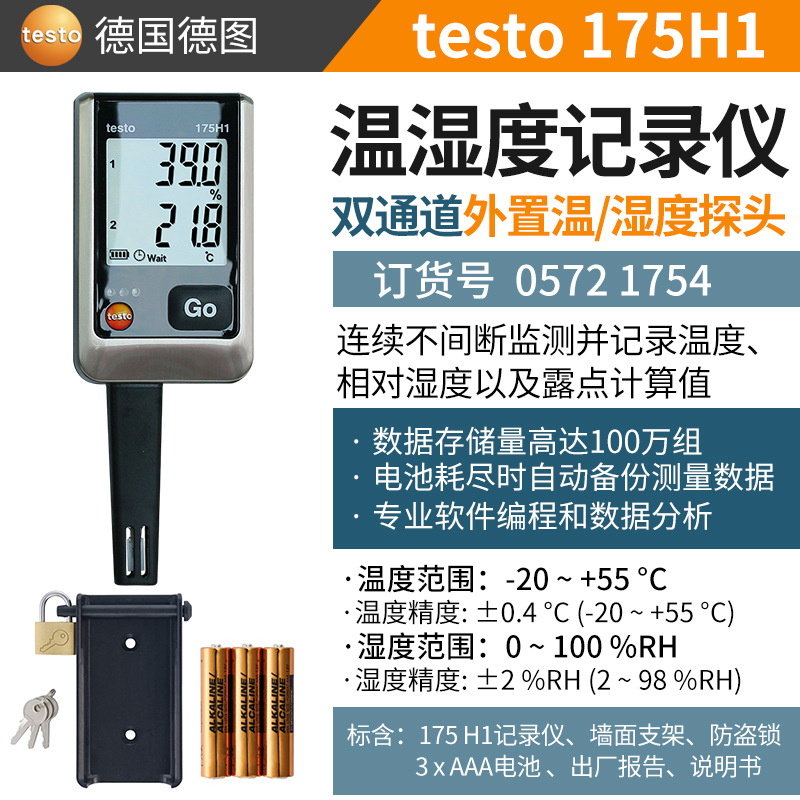 Testo 174T/174H/176H1 온도 및 습도 자동 기록 산업용 디지털 온도계 기록기스토어 가기