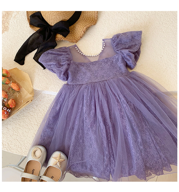 여아 반팔 드레스 2026 여름 신상 아동용 메쉬 공주 드레스 중소형 아동용 리본 드레스 트렌디