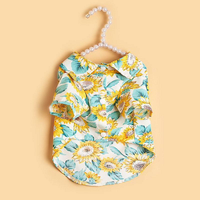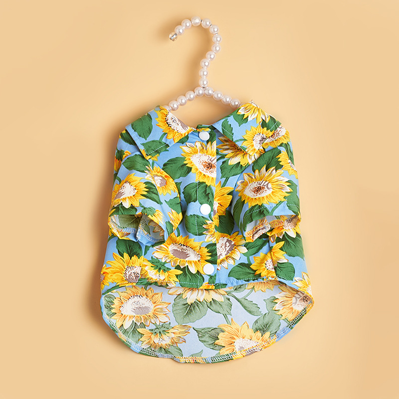 여름 애완 동물 고양이 옷 얇은 테디 개 옷 셔츠 해바라기 인쇄 캐주얼 고양이 옷 도매스토어 가기