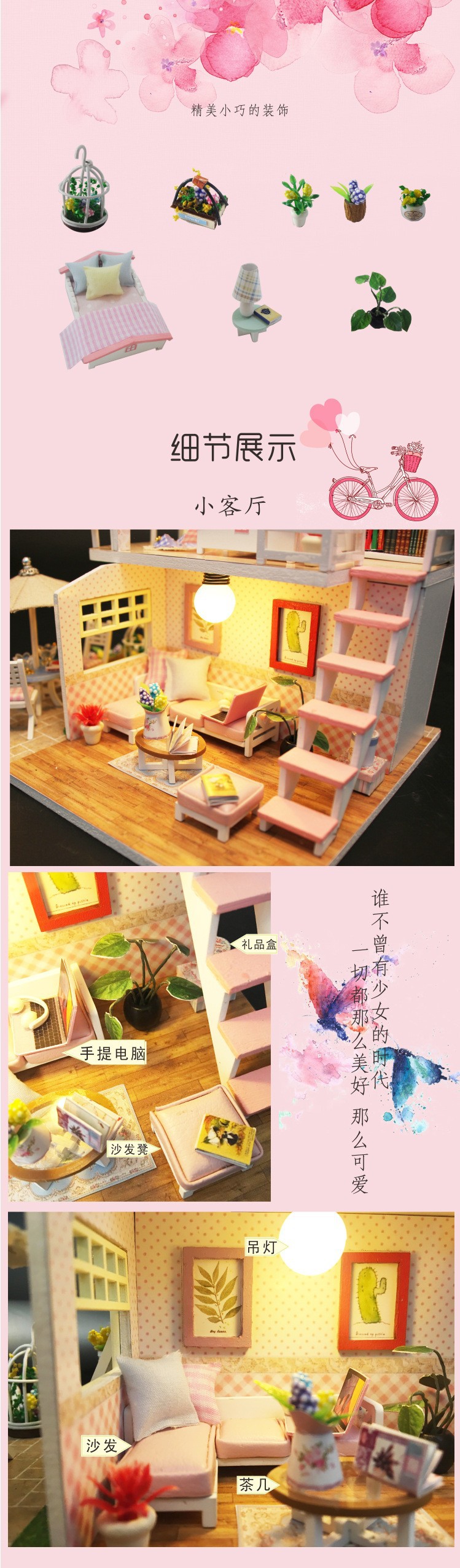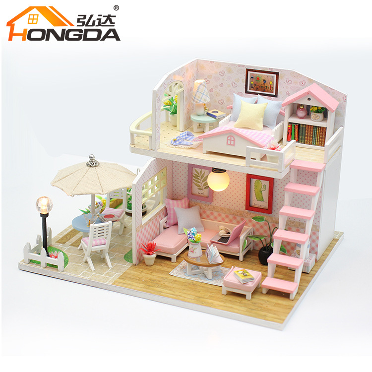 홍다 DIY 소형 주택 키트, 수제 조립식 미니 목조 건축 모형 집, 창의적인 장난감 선물