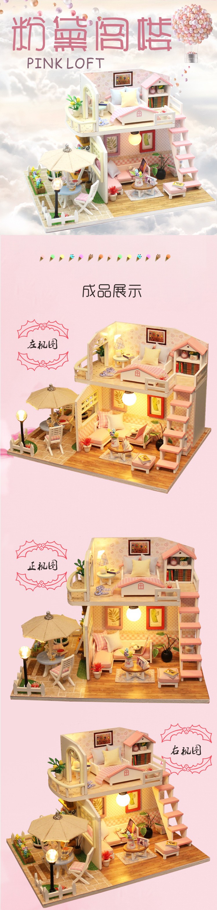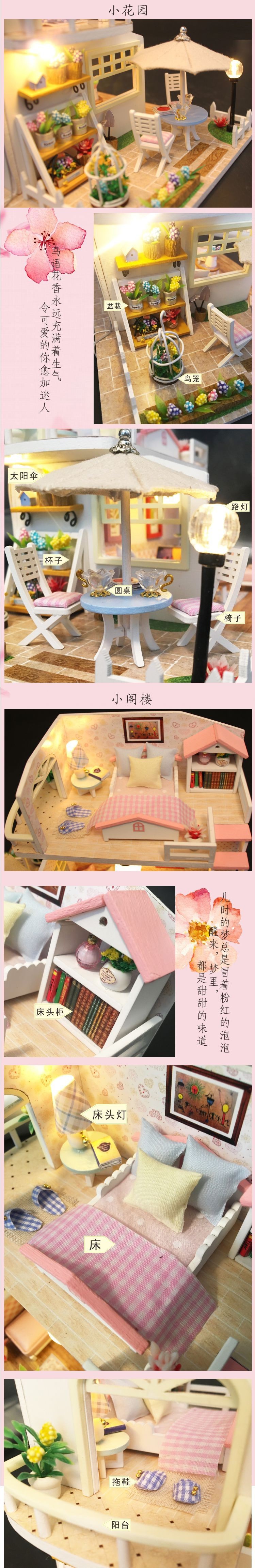 홍다 DIY 소형 주택 키트, 수제 조립식 미니 목조 건축 모형 집, 창의적인 장난감 선물스토어 가기