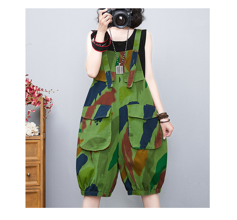 리얼 샷 재고 2022 여름 새로운 데님 그린 랜턴 멜빵 여성용 6 점 하이 웨이스트 느슨한 와이드 레그 팬츠 트렌디 여성
