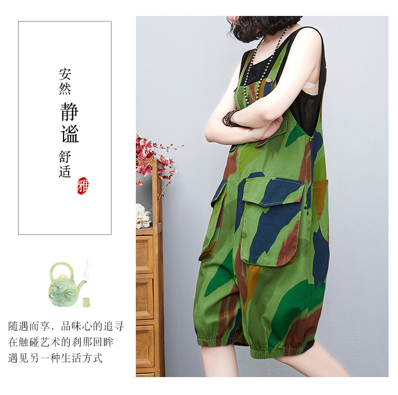 리얼 샷 재고 2022 여름 새로운 데님 그린 랜턴 멜빵 여성용 6 점 하이 웨이스트 느슨한 와이드 레그 팬츠 트렌디 여성스토어 가기