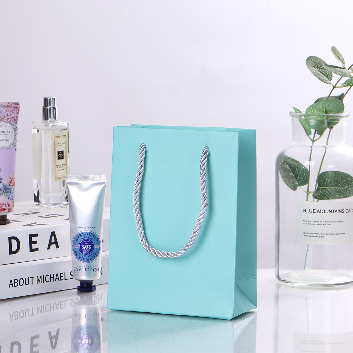 스팟 티푸 블루 핸드백 화장품 선물 상자 포장 백 화이트 카드 휴대용 종이 가방 선물 가방 사용 가능 및 로고