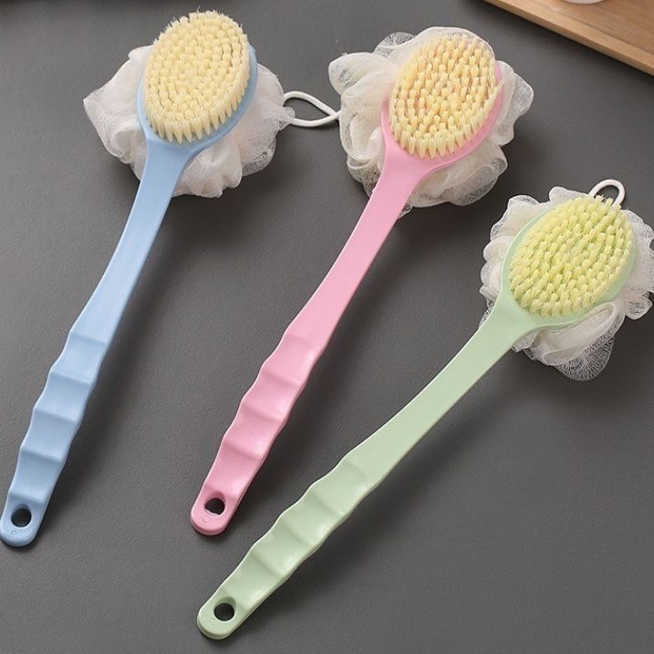 양면 목욕 볼 2in1 긴 손잡이 목욕 브러쉬 목욕 브러쉬 부드러운 머리 마사지 목욕 브러쉬 수세미