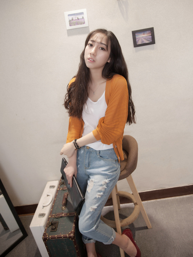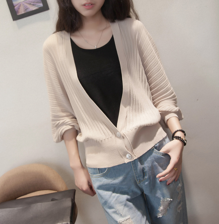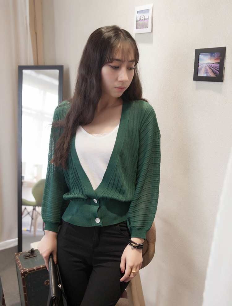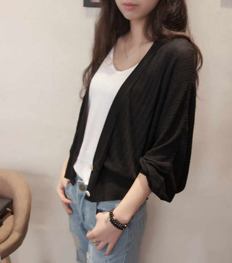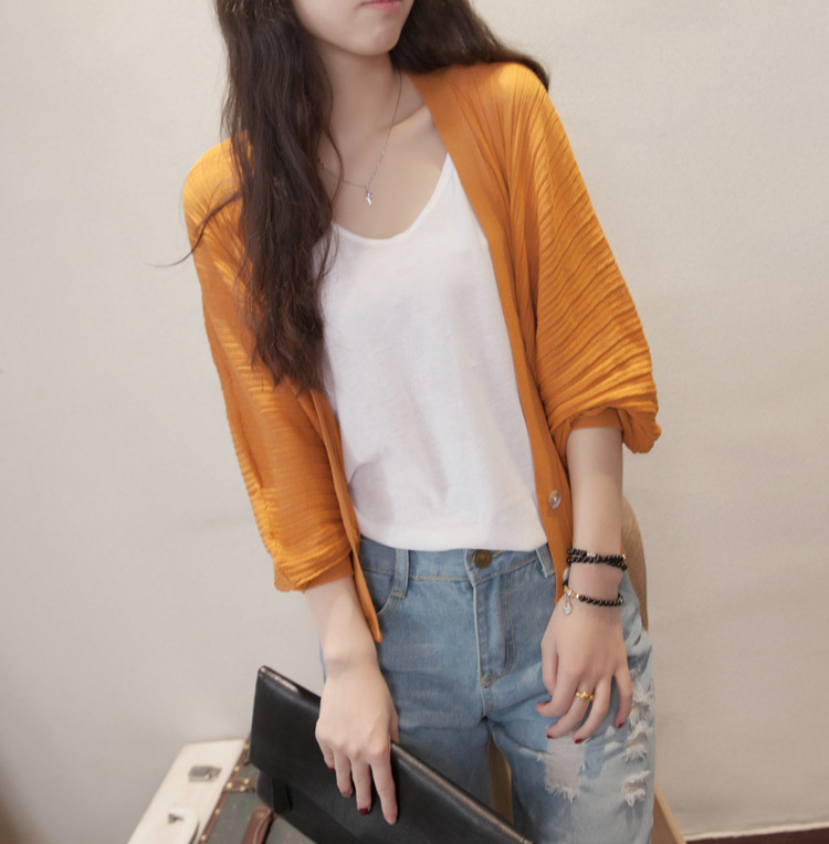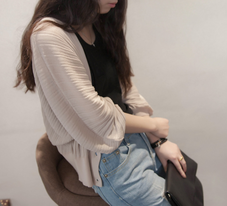 여름 랜턴 슬리브 여성용 숄 코트 아이스 실크 아우터 느슨한 한국식 자외선 차단제 의류 에어컨 셔츠 니트 가디건 얇은