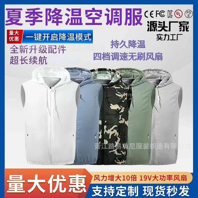 새로운 냉동 팬 의류 조끼 남성과 여성의 에어컨 의류 충전 조끼 냉각 팬 의류 야외 태양 보호 의류 여성스토어 가기