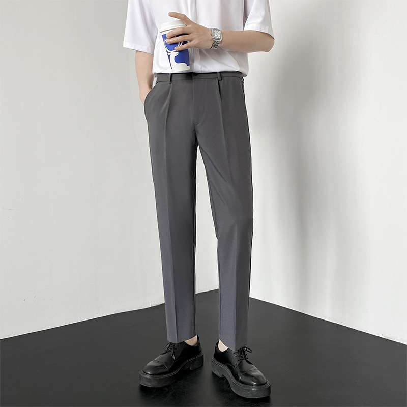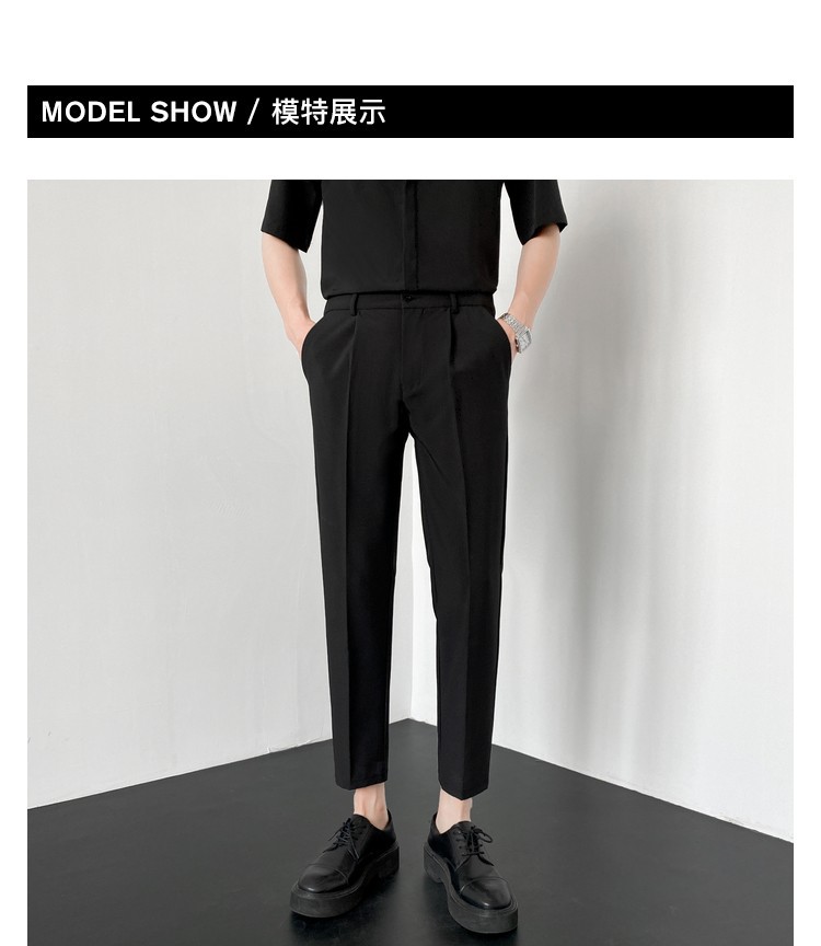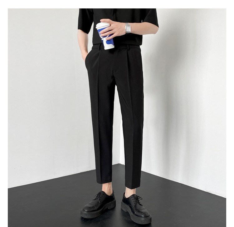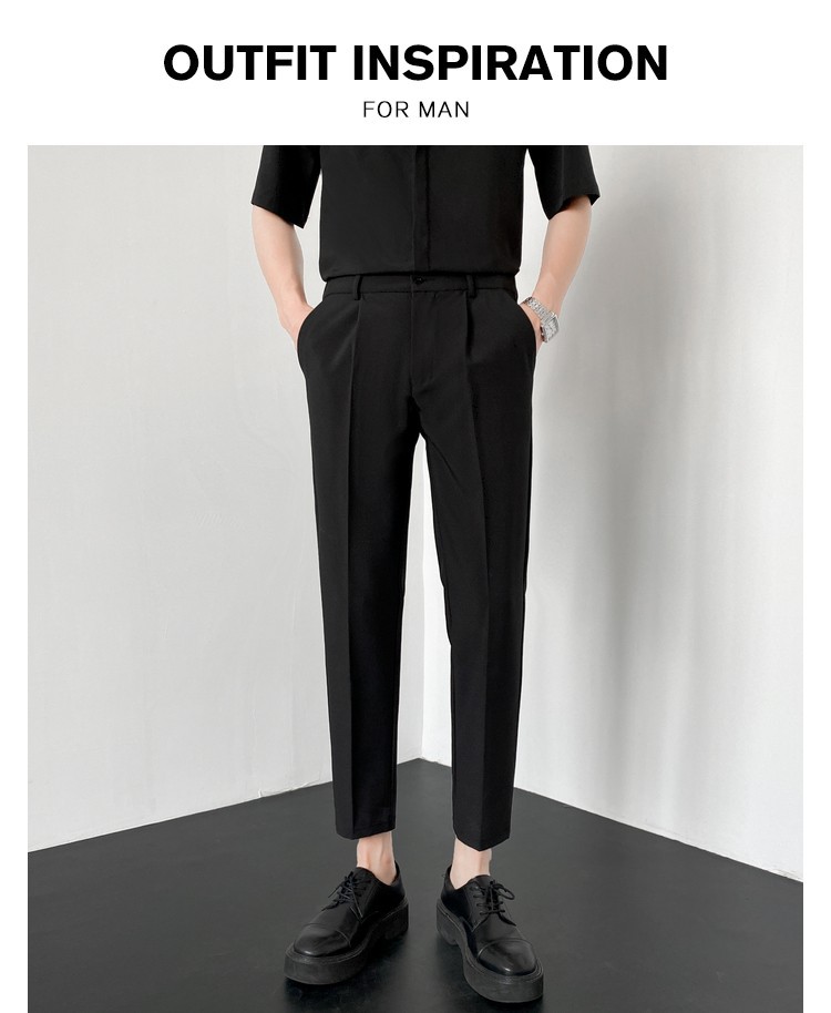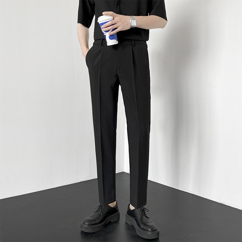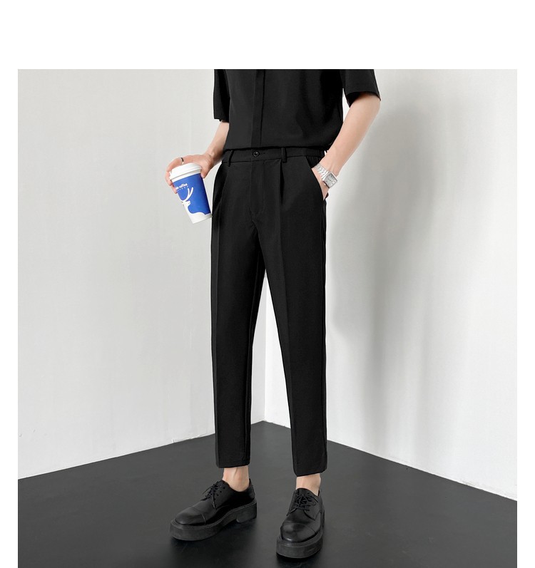 남성용 정장바지, 신축성 있는 스트레이트 캐주얼팬츠, 한국형 트렌디 남아 9부팬츠, 활용도 높은 슬림핏 블랙 팬츠