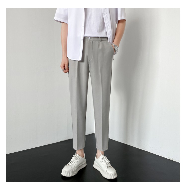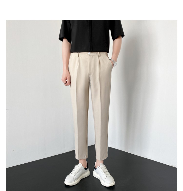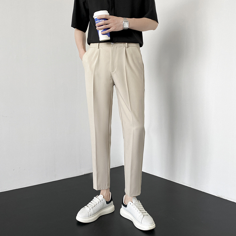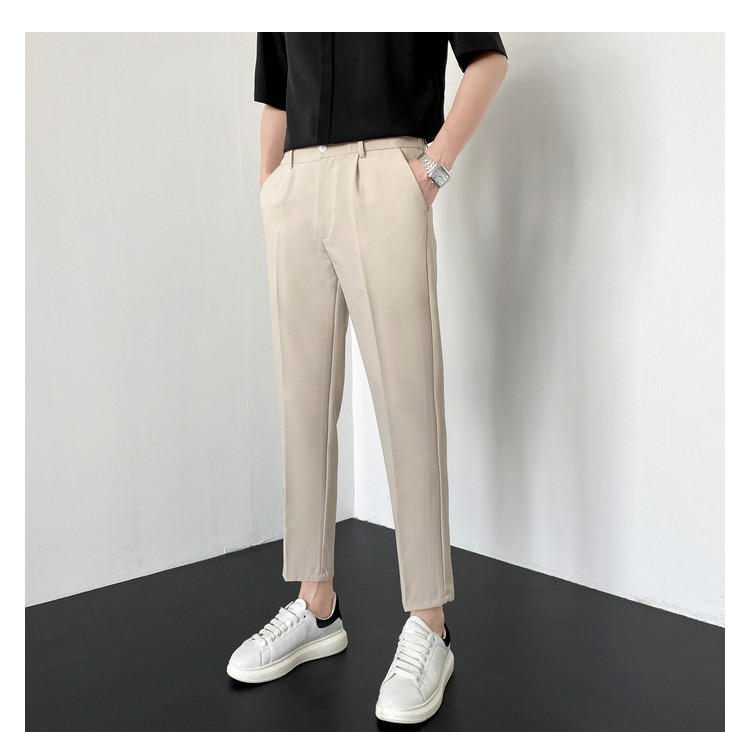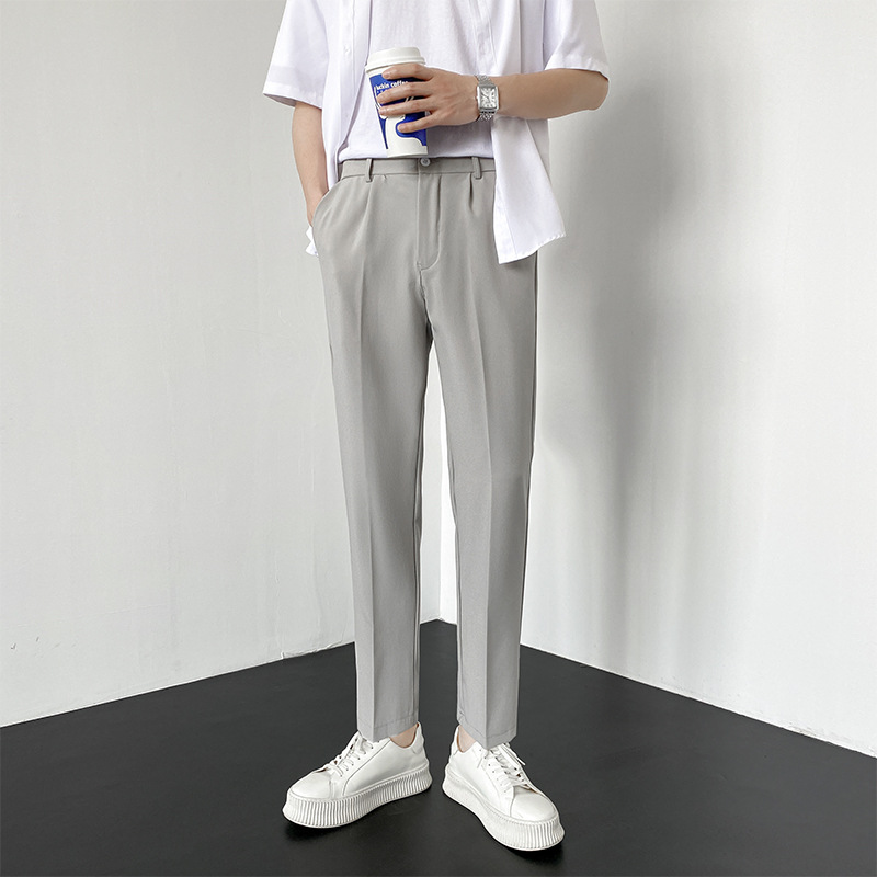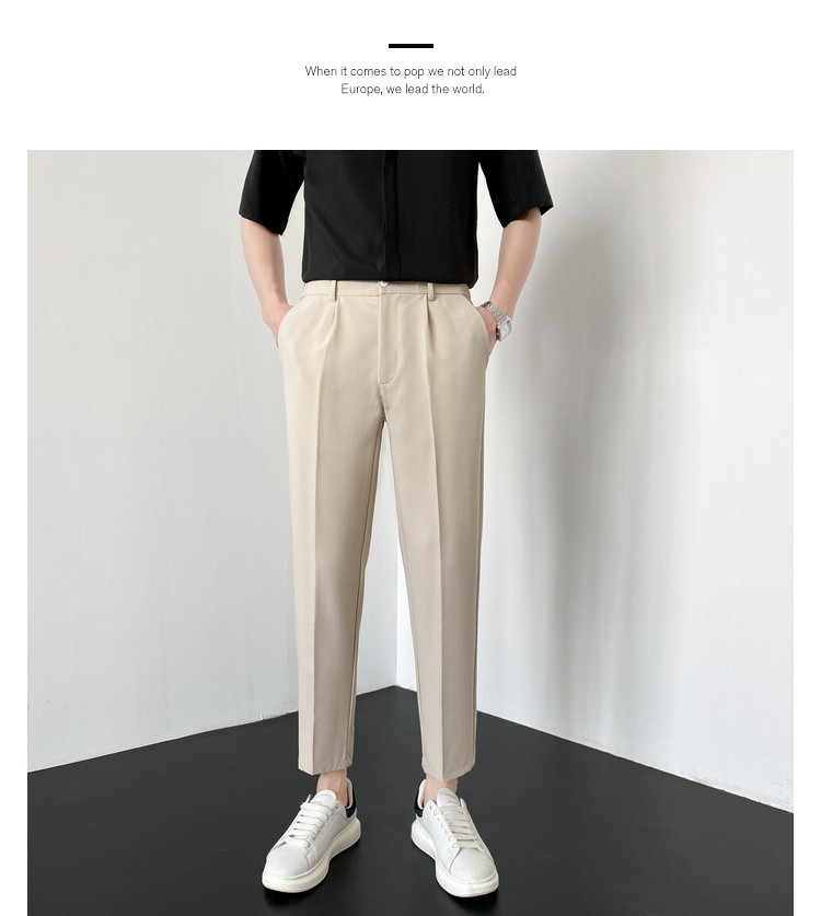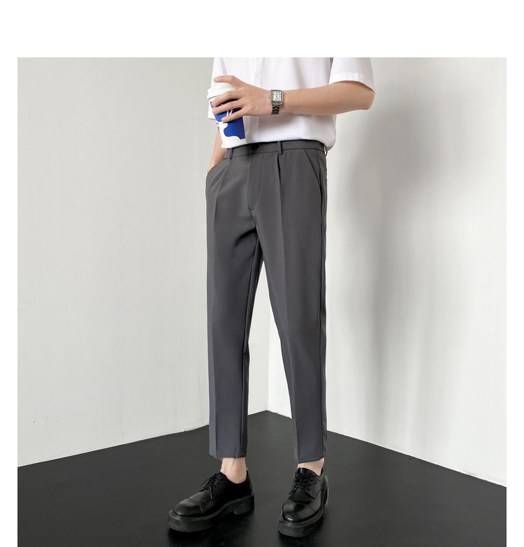 남성용 정장바지, 신축성 있는 스트레이트 캐주얼팬츠, 한국형 트렌디 남아 9부팬츠, 활용도 높은 슬림핏 블랙 팬츠