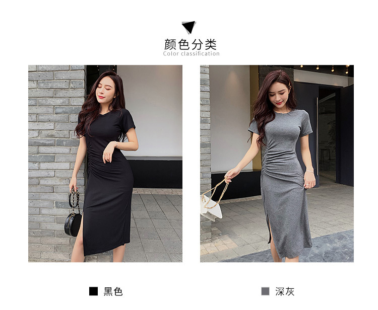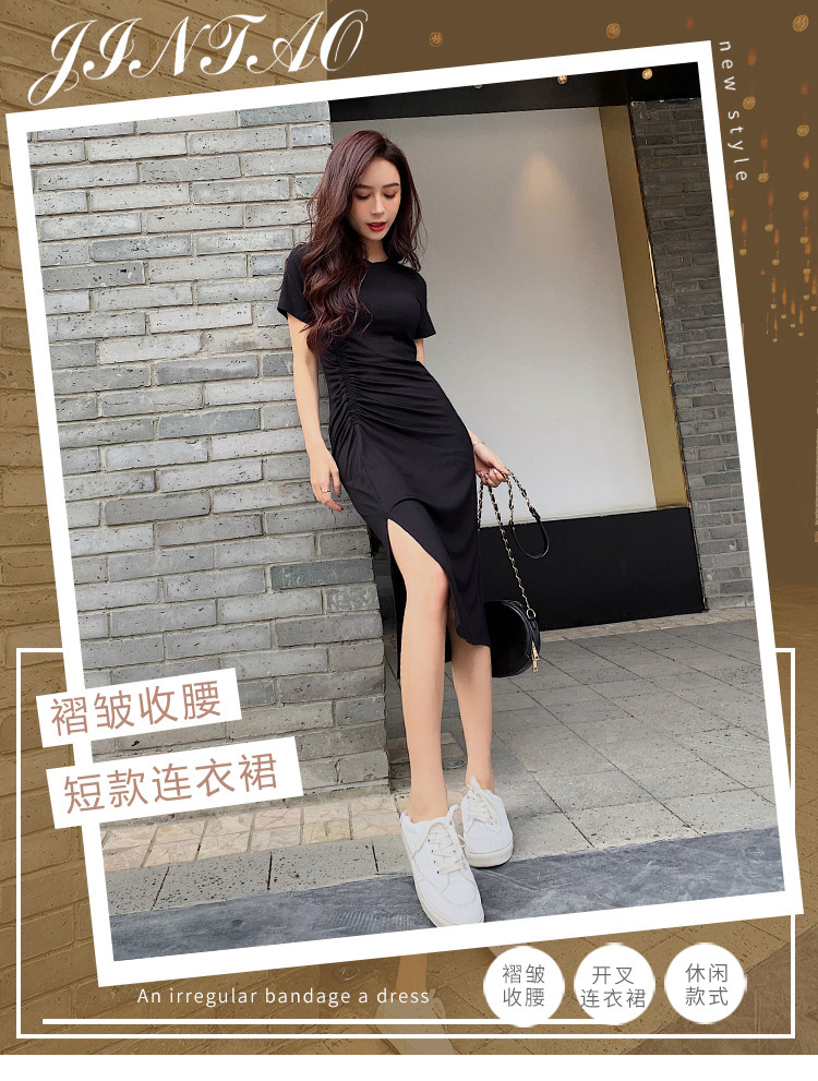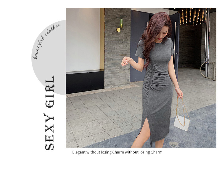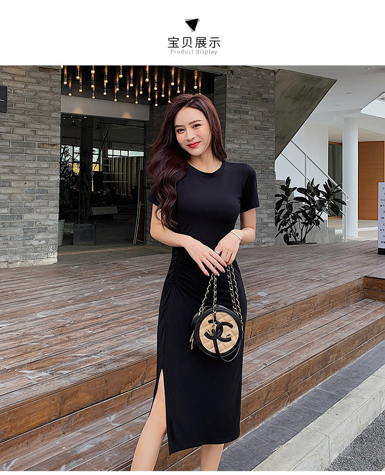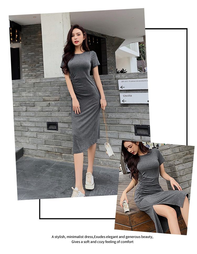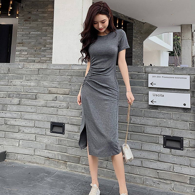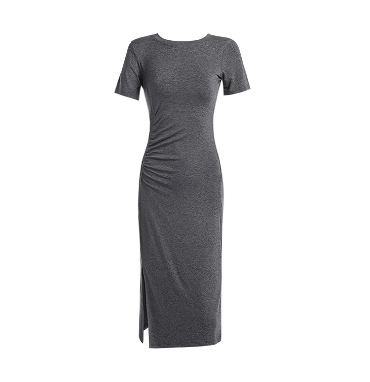 여성용 모달 드레스 2026년 여름 신상 슬릿 디자인 슬림핏 반팔 무릎길이 미디 드레스 해외 무역
