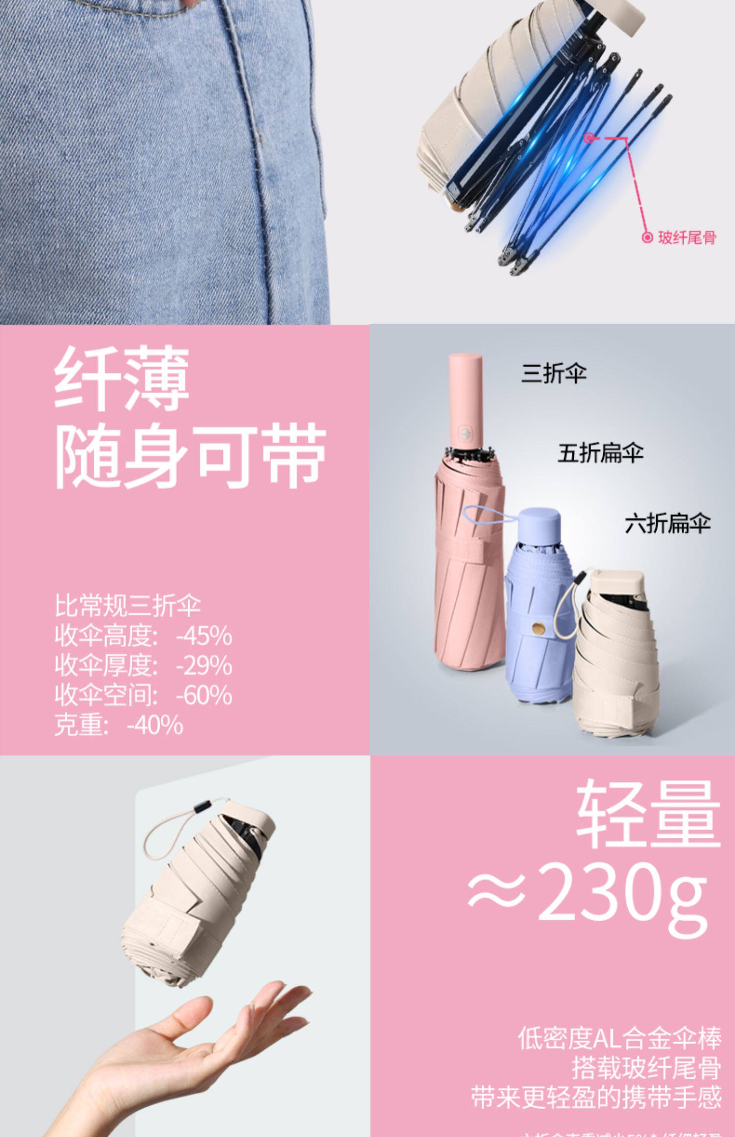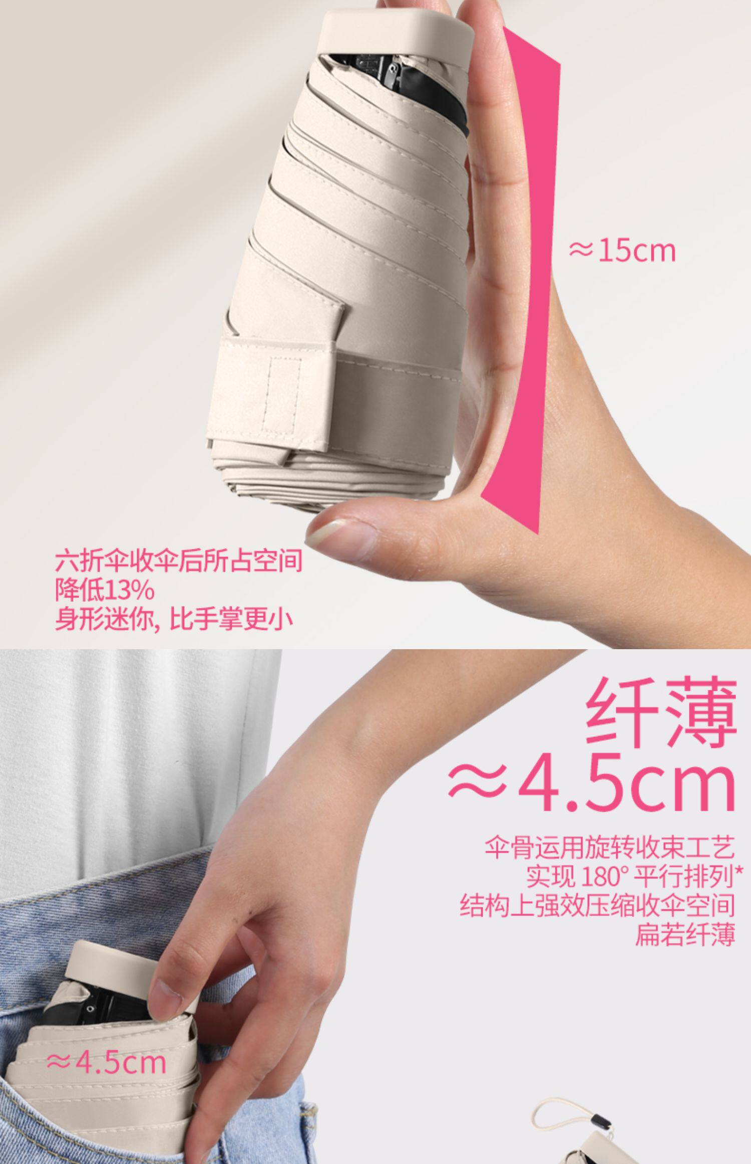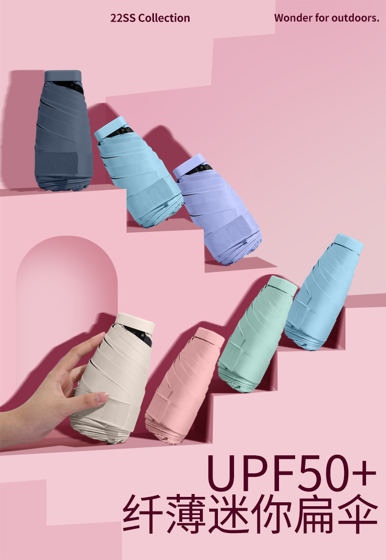 여성용 써니/레인 우산, 자외선 차단 포켓 우산 40% off 플랫 미니 태양 우산, 휴대용스토어 가기
