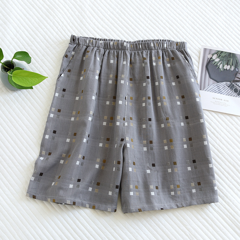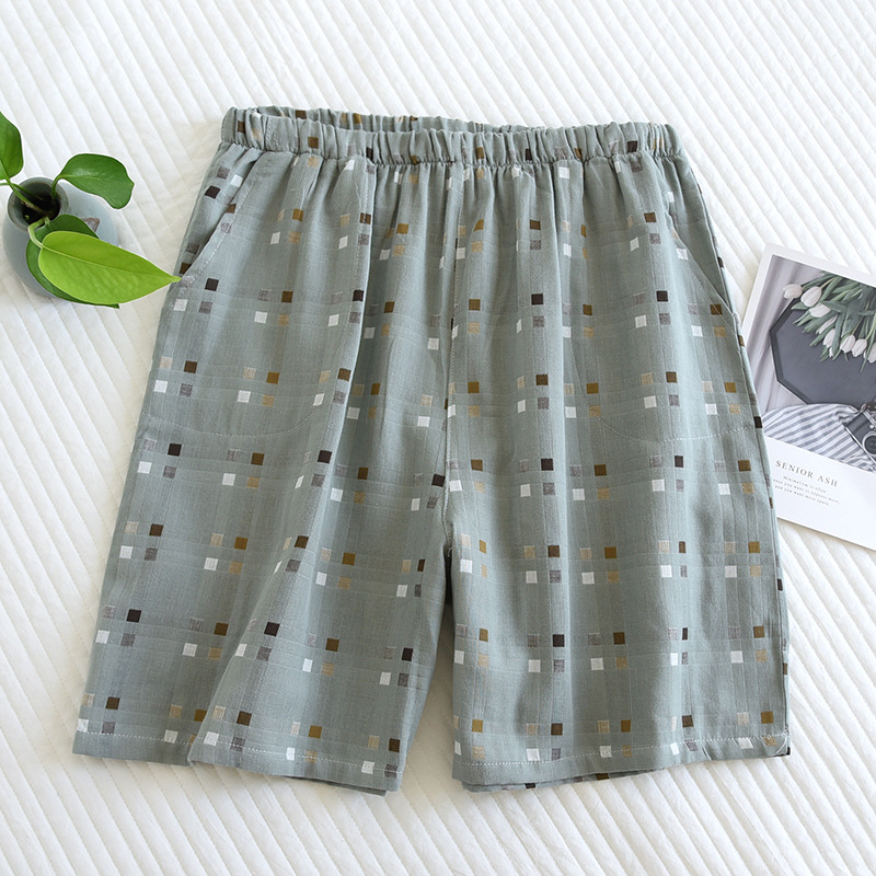 코튼 거즈 남성용 파자마 바지 여름 모든 면 더블 거즈 반바지 일본식 격자 무늬 비치 팬츠 캐주얼 하프 팬츠스토어 가기