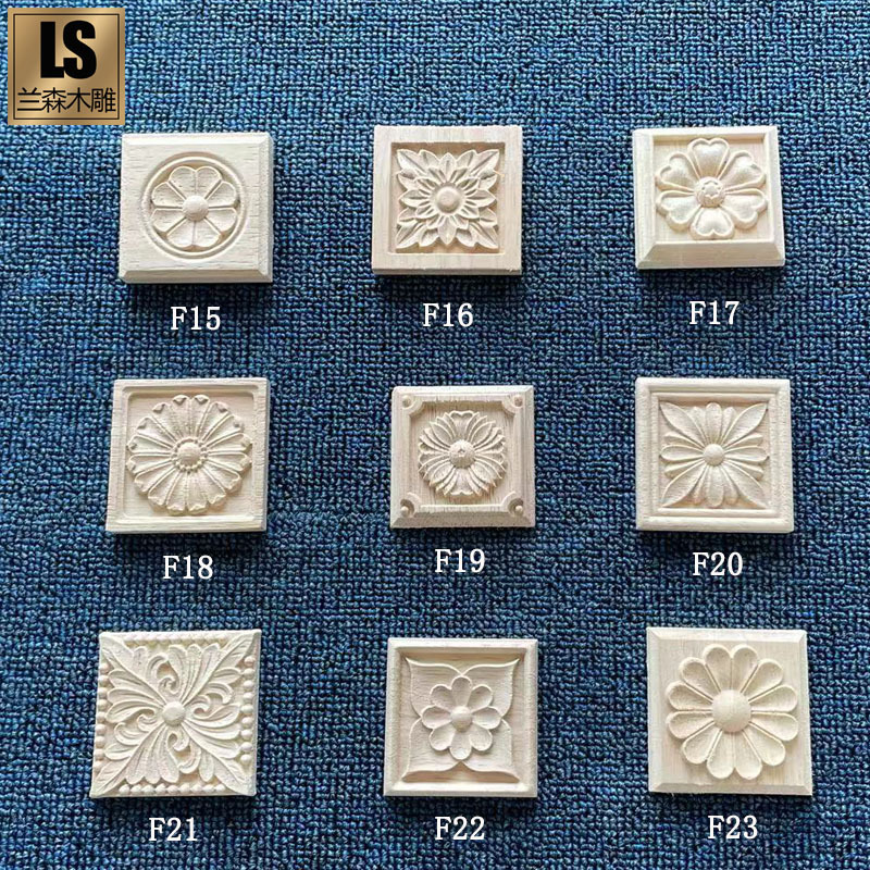 동양 나무 조각 단단한 나무 조각 유럽 스타일 가구 패치 광장 꽃 로마 기둥 사각형 데칼 홈 장식 나무