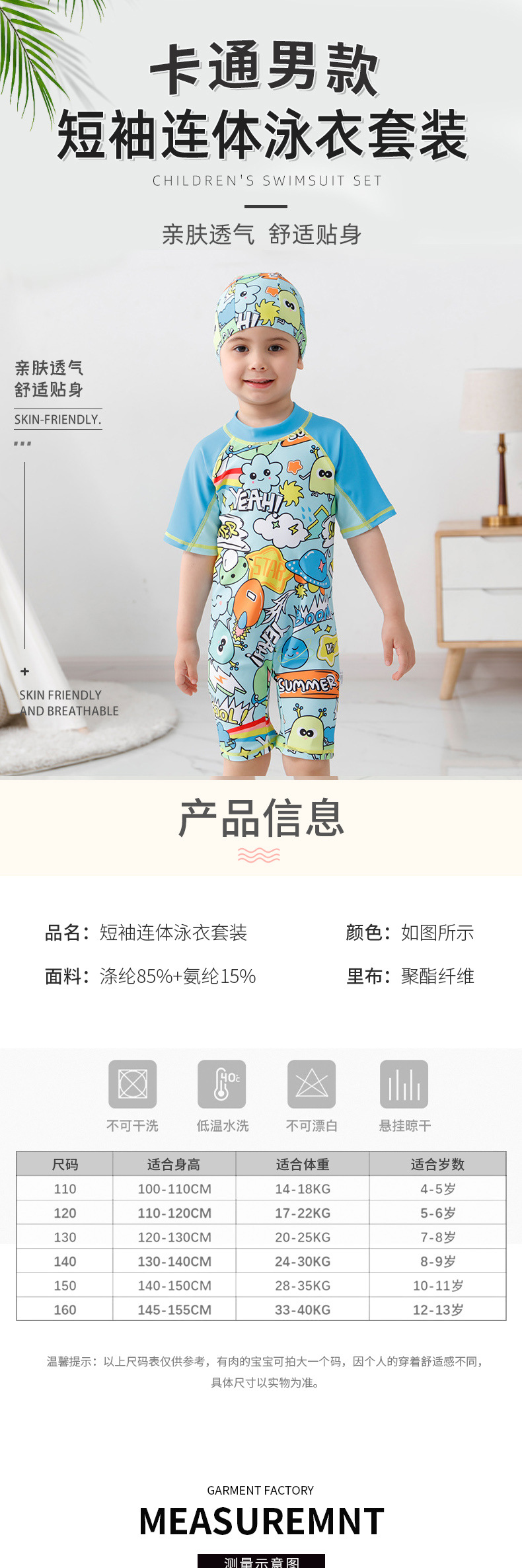 어린이 수영복 소년 해변 수영복 중소형 어린이 속건성 서핑복 남녀공용 자외선 차단 온천 원피스 수영복