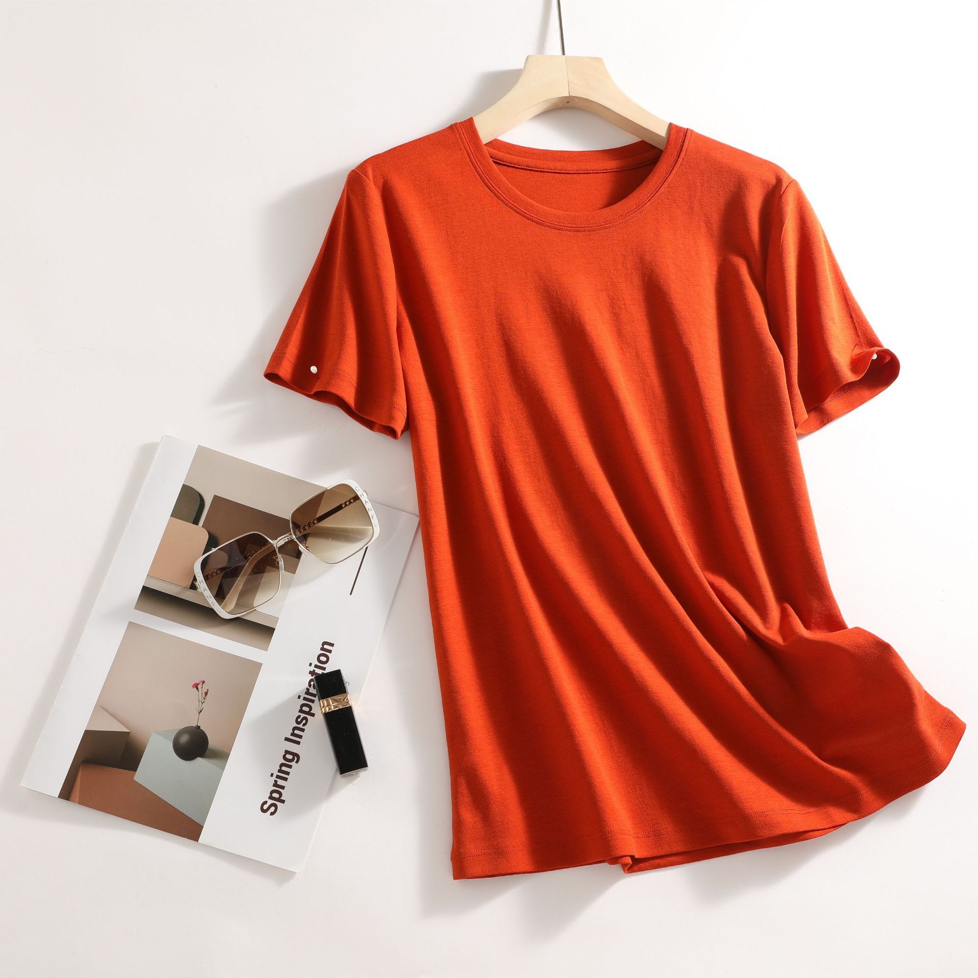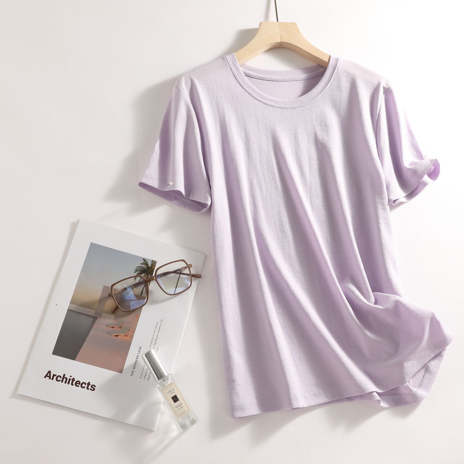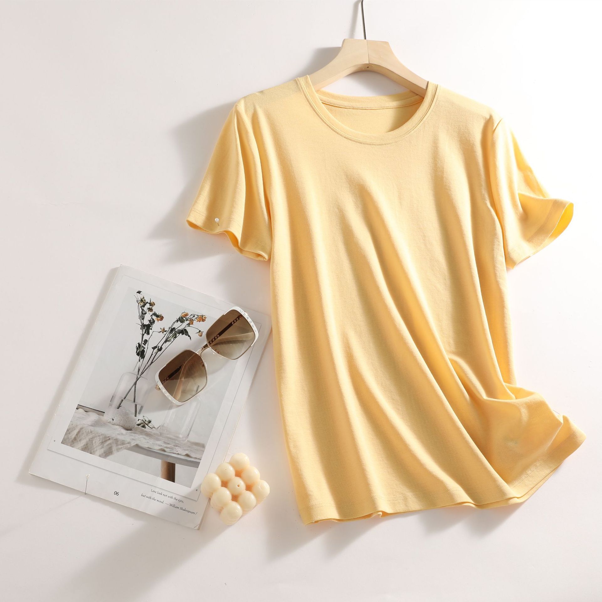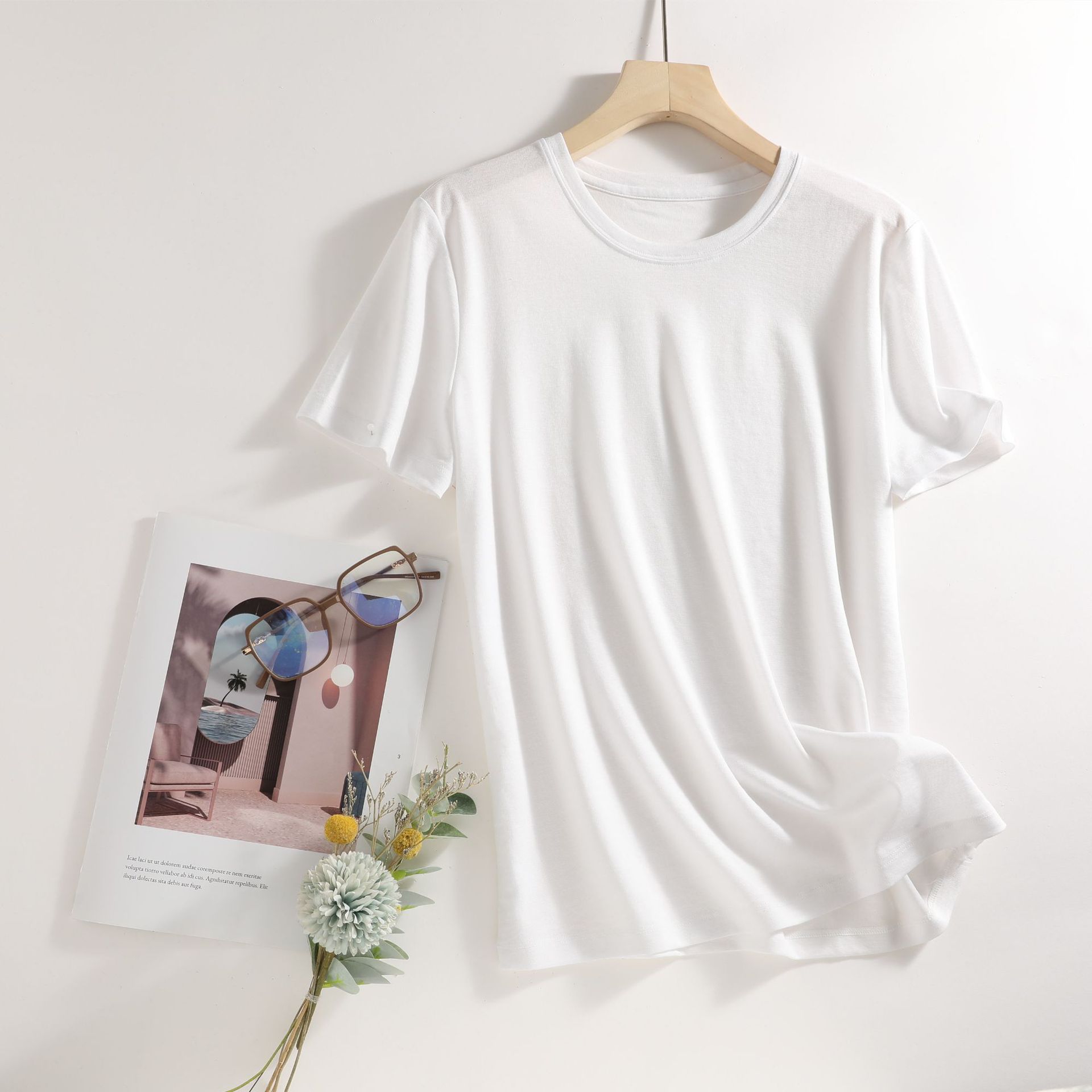 여성용 실크 반팔 티셔츠 다목적 솔리드 컬러 화이트 머서라이즈 코튼 티셔츠 라운드 넥 v 넥 반팔 티셔츠 여성용 바닥 셔츠스토어 가기