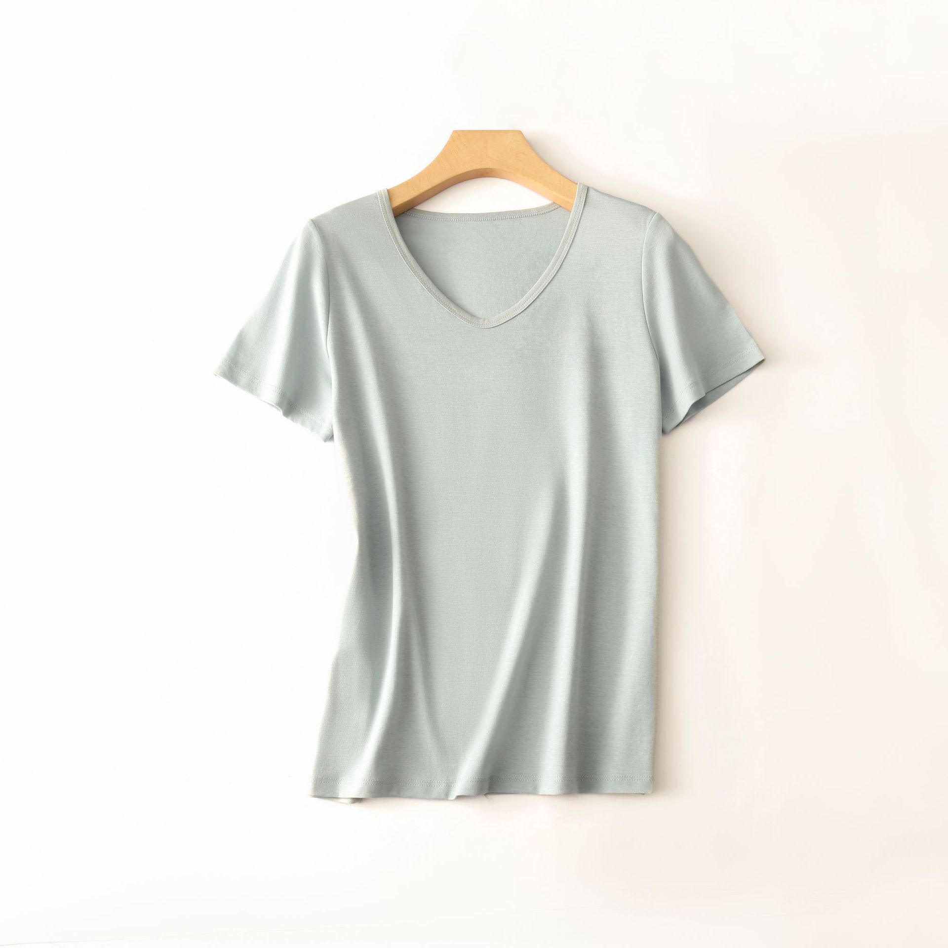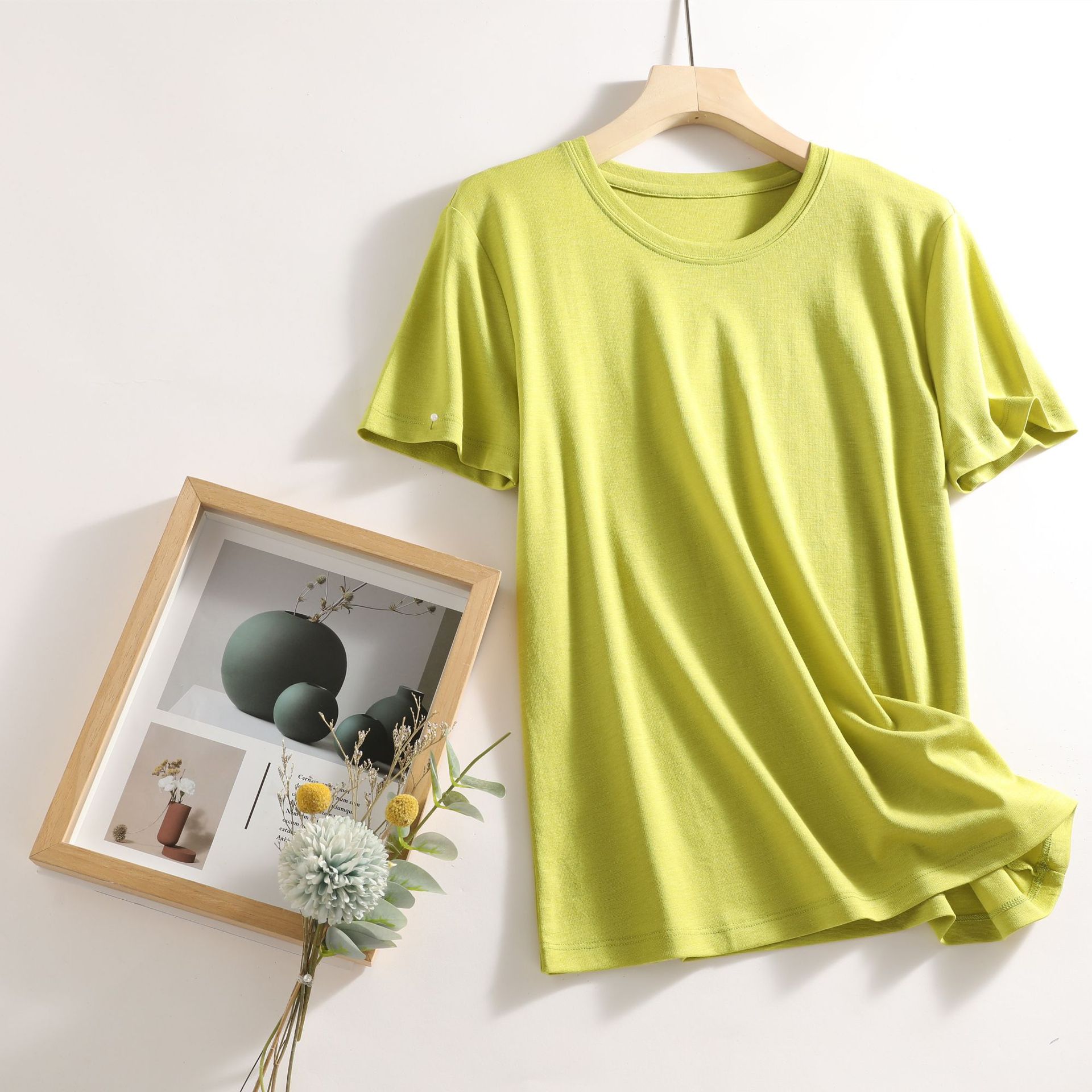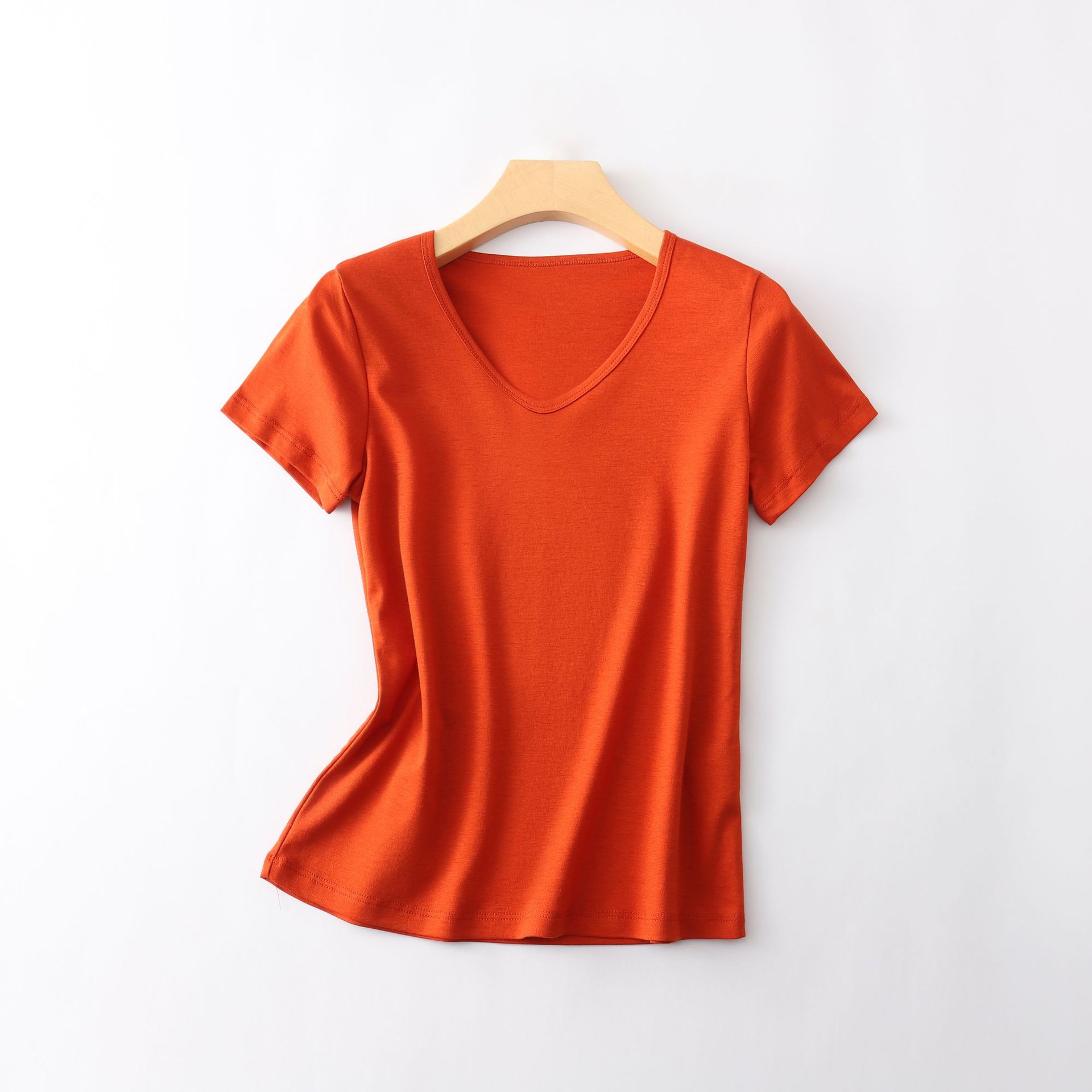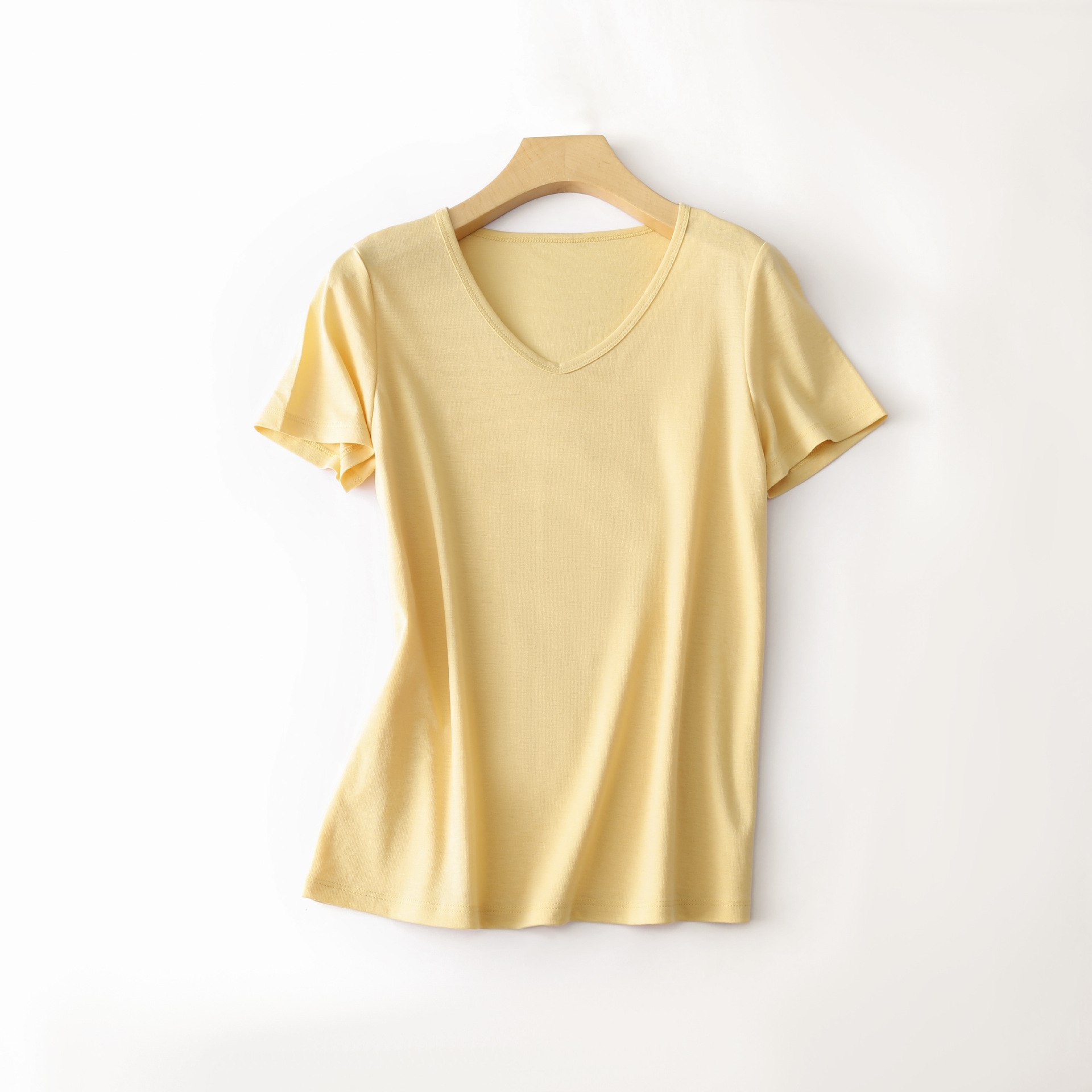 여성용 실크 반팔 티셔츠 다목적 솔리드 컬러 화이트 머서라이즈 코튼 티셔츠 라운드 넥 v 넥 반팔 티셔츠 여성용 바닥 셔츠스토어 가기