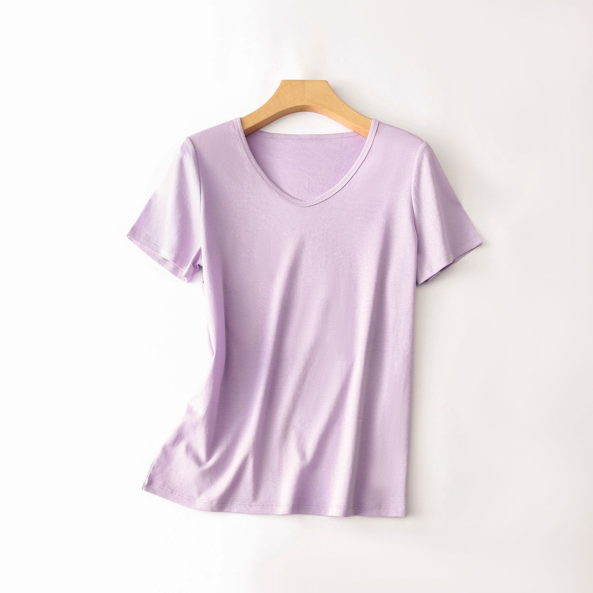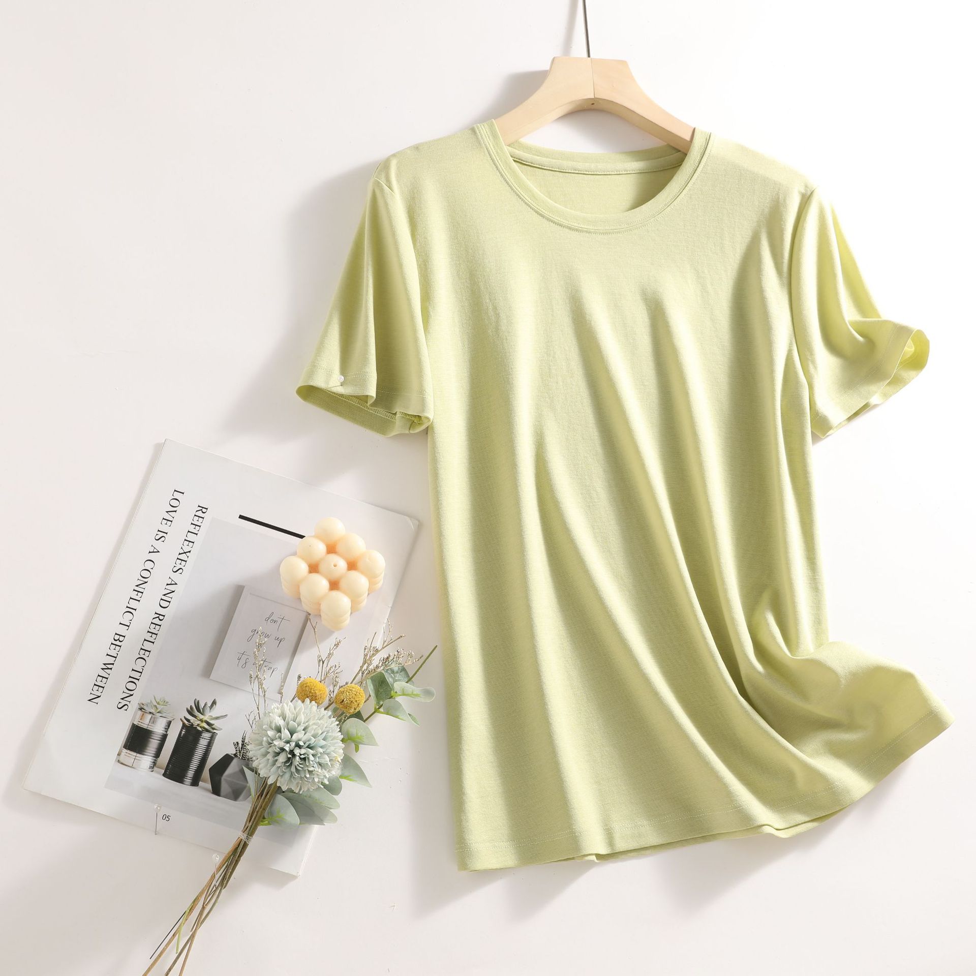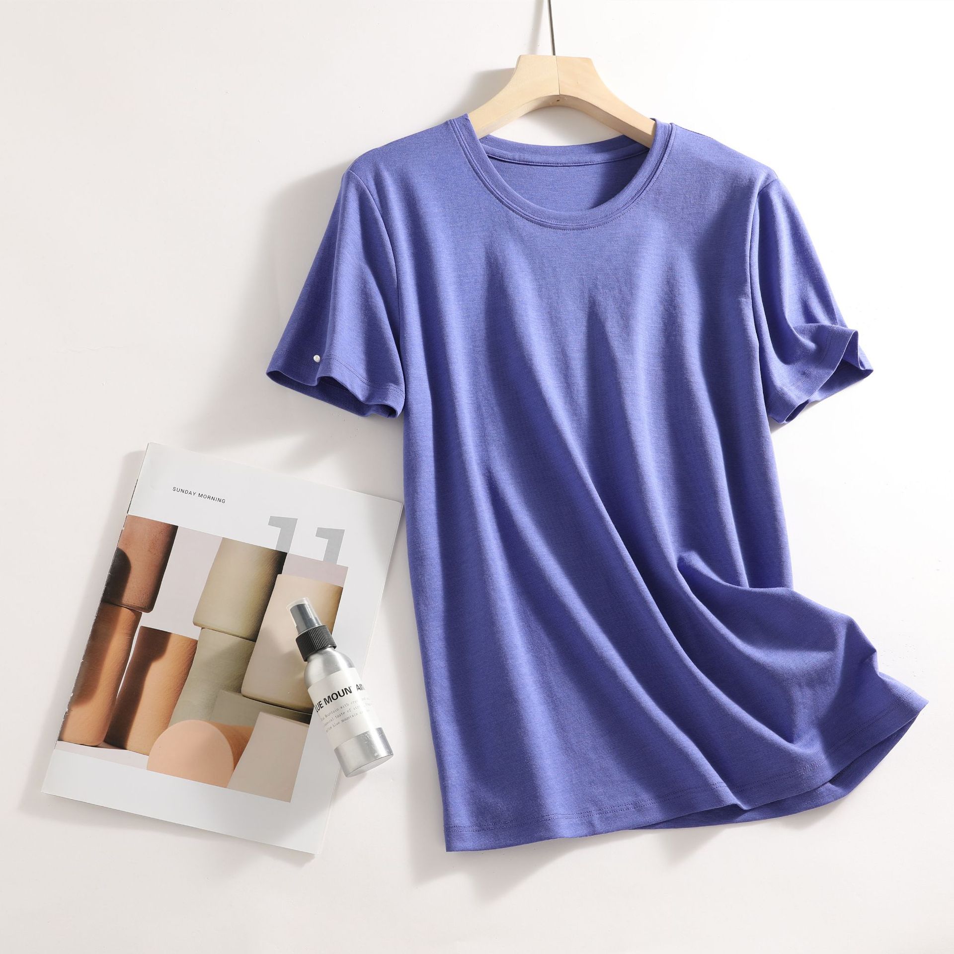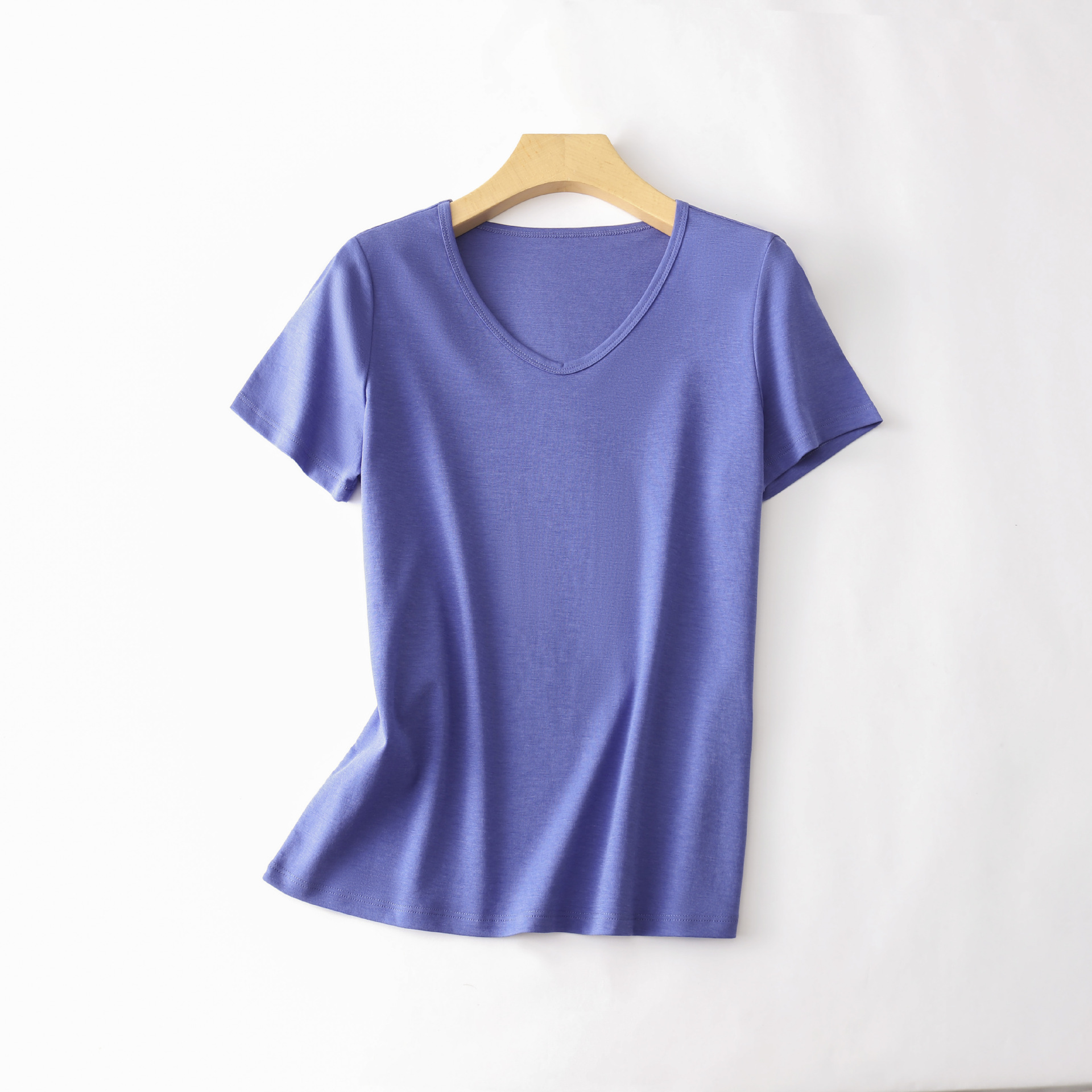 여성용 실크 반팔 티셔츠 다목적 솔리드 컬러 화이트 머서라이즈 코튼 티셔츠 라운드 넥 v 넥 반팔 티셔츠 여성용 바닥 셔츠스토어 가기