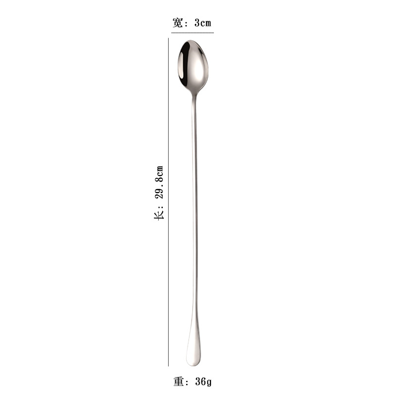 국경 간 스테인레스 스틸 길이 얼음 숟가락 두껍게 혼합 숟가락 여분의 긴 숟가락 조미료 모래 얼음 깊은 항아리 꿀 숟가락 30cm스토어 가기